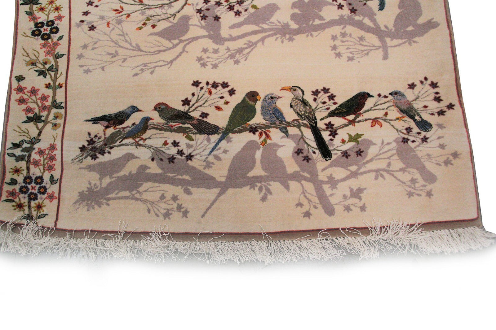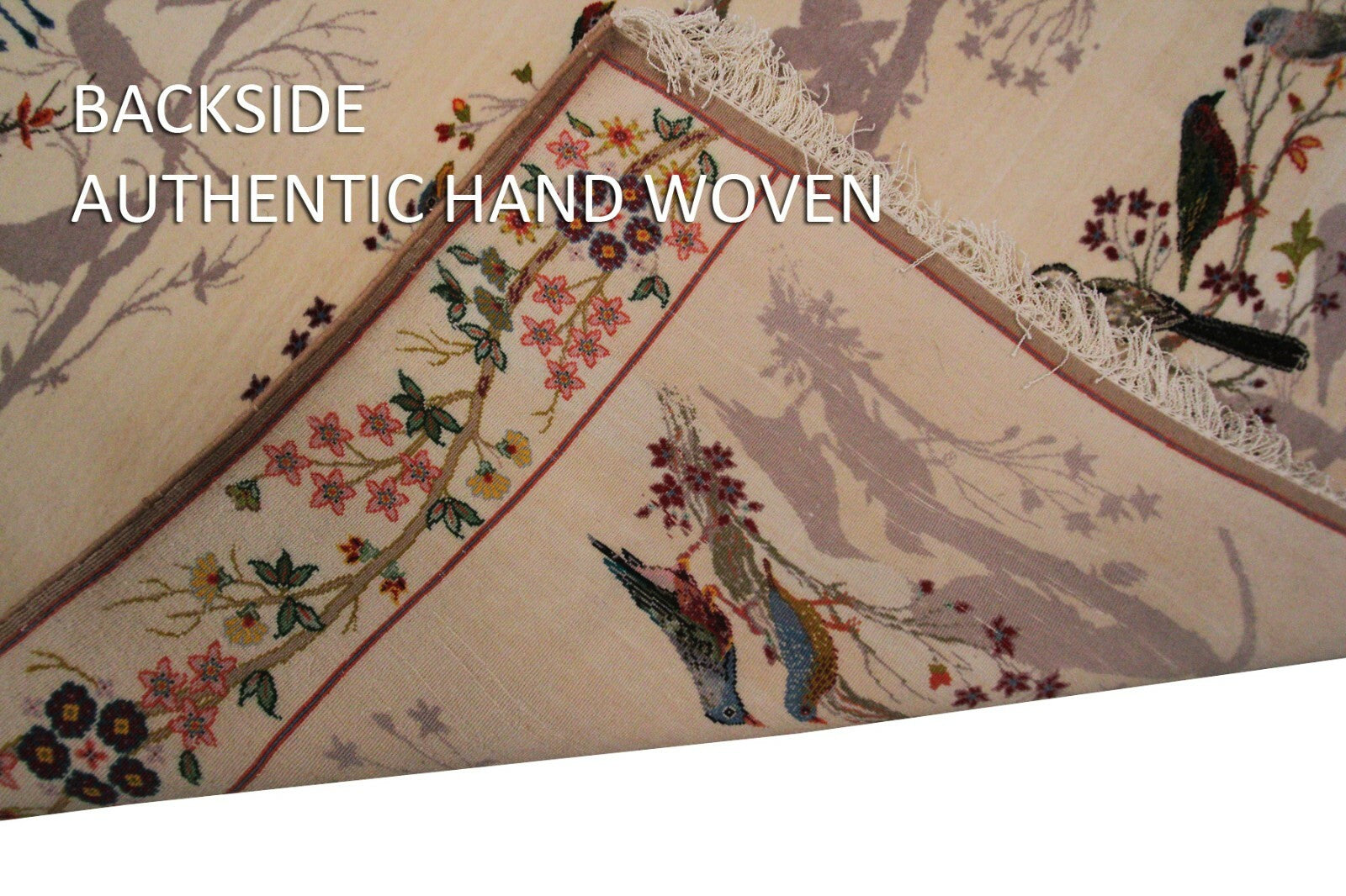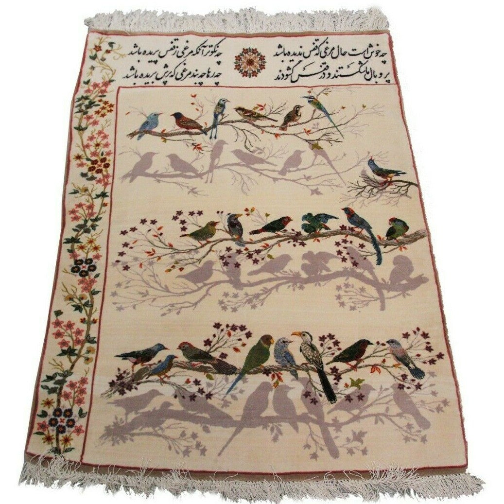 This genuine hand knotted Wool Rug with Silk Foundation by Designers Choice Rugs, is a true Piece of Art. With its intricate and extremely Fine weaving and Poetry and Birds design, this rug portrays an exquisite opulence.