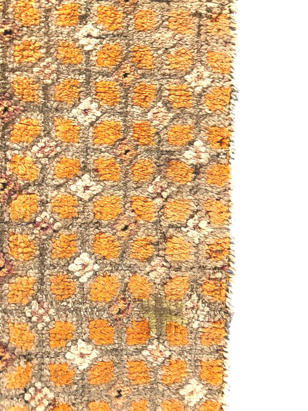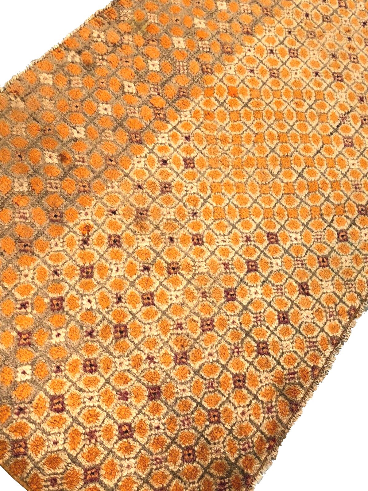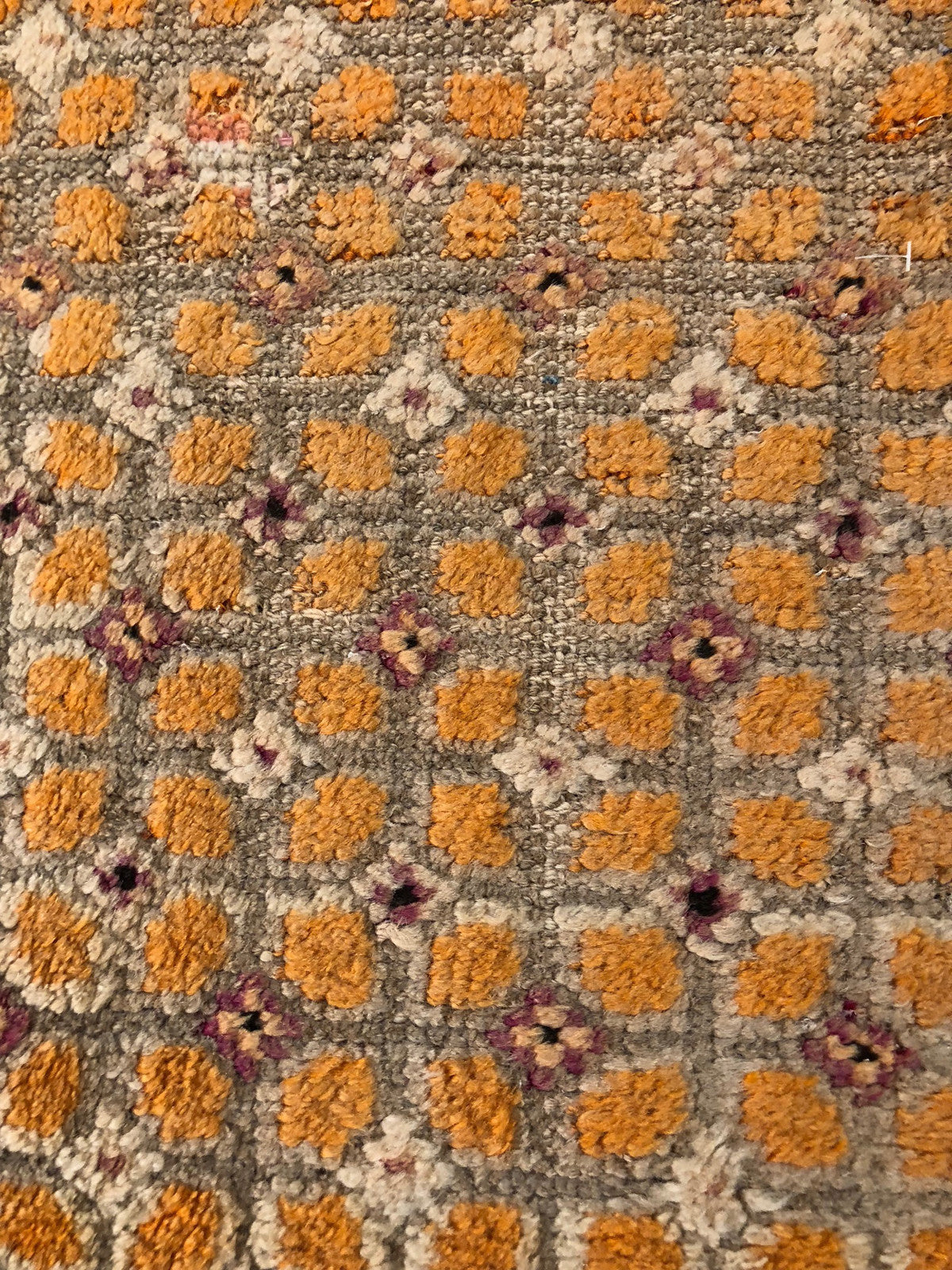 "This is a very fine magnificent Tibetan rug from 1900. It has a beautiful rare geometric overall design in an amazing gold color palette and spectacular texture." -DCR