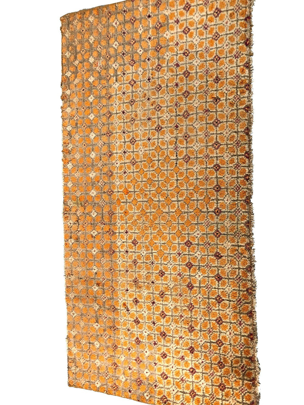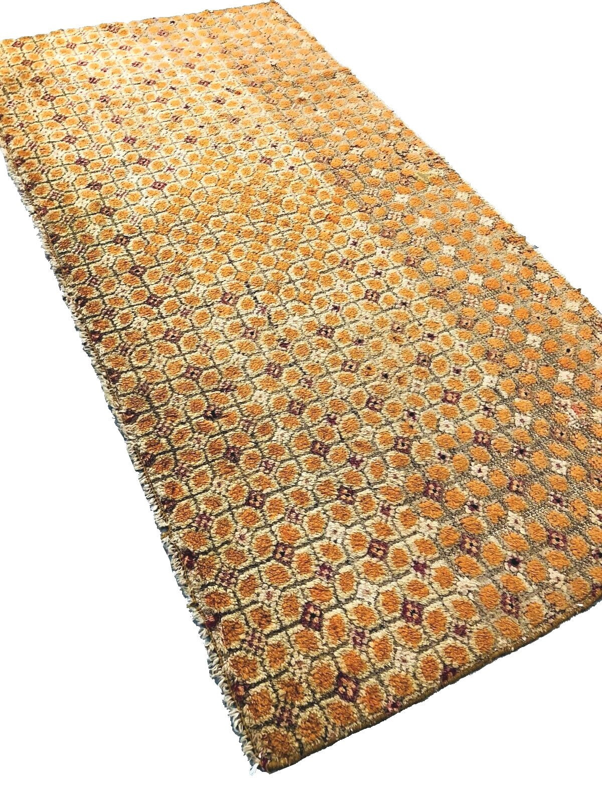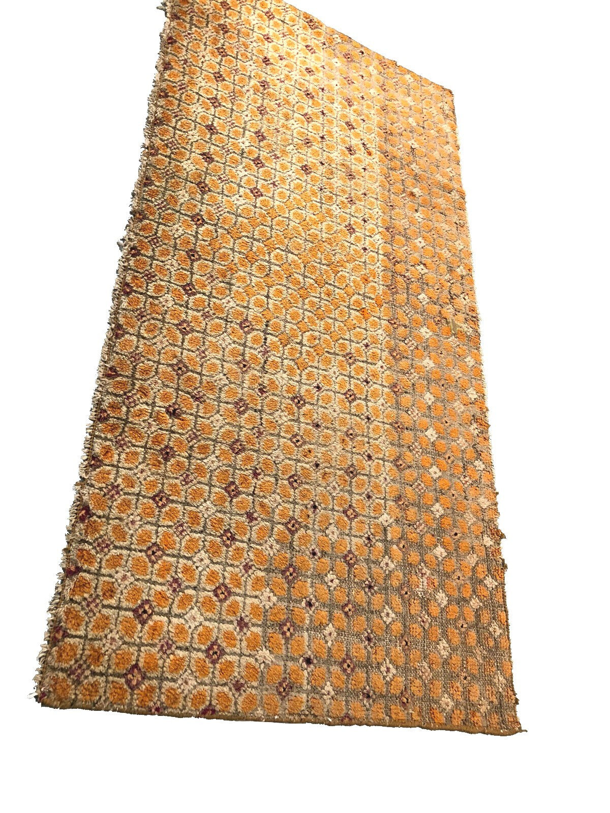 "This is a very fine magnificent Tibetan rug from 1900. It has a beautiful rare geometric overall design in an amazing gold color palette and spectacular texture." -DCR