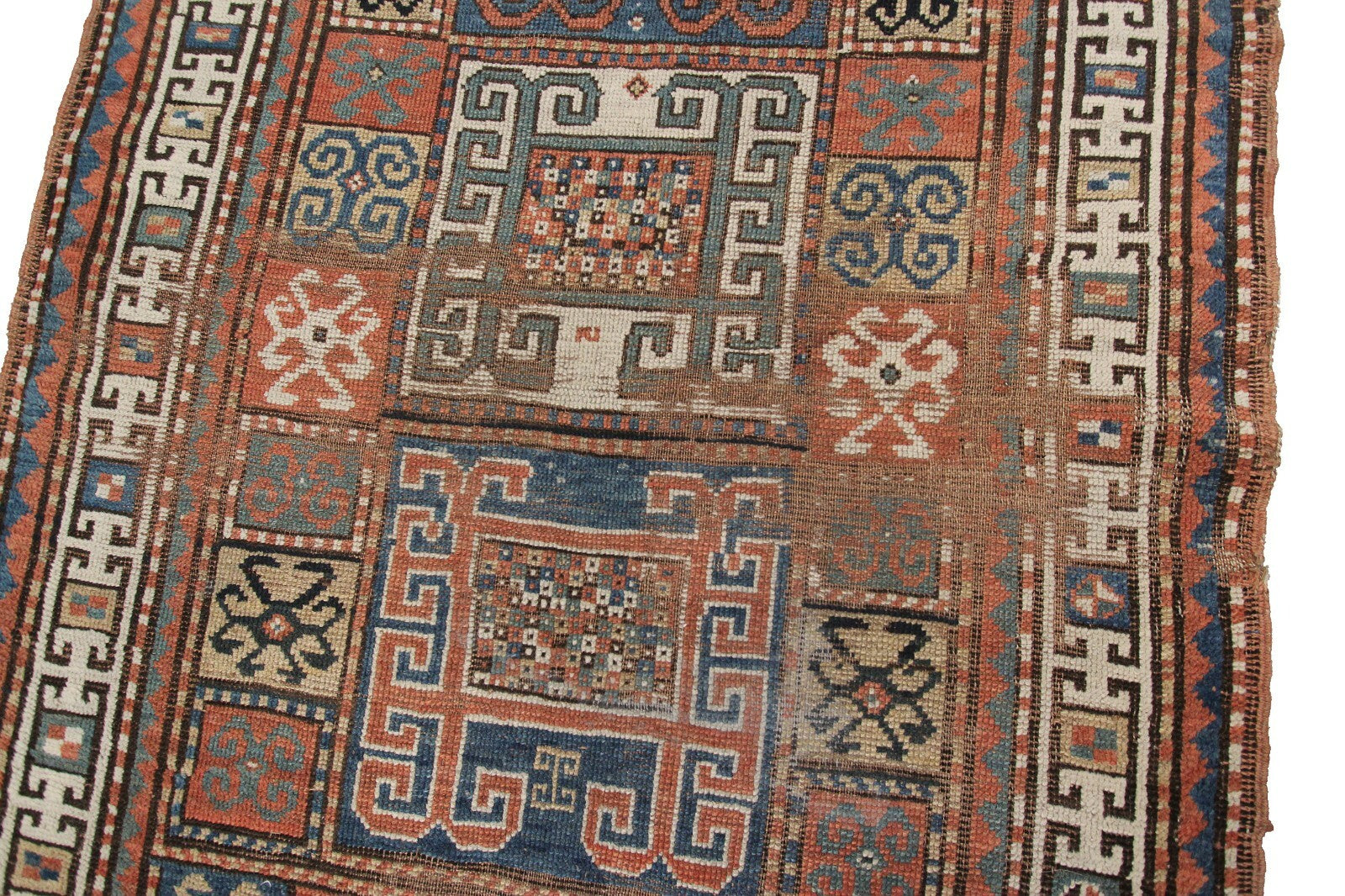 Antique Caucasian Pinwheel Kazak Rug Rare Wool Tribal