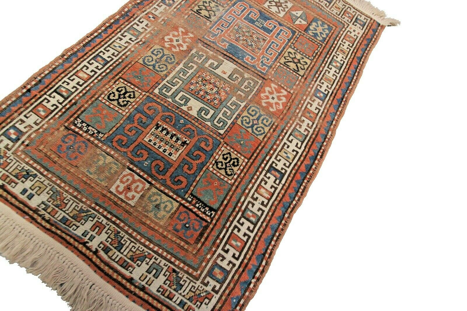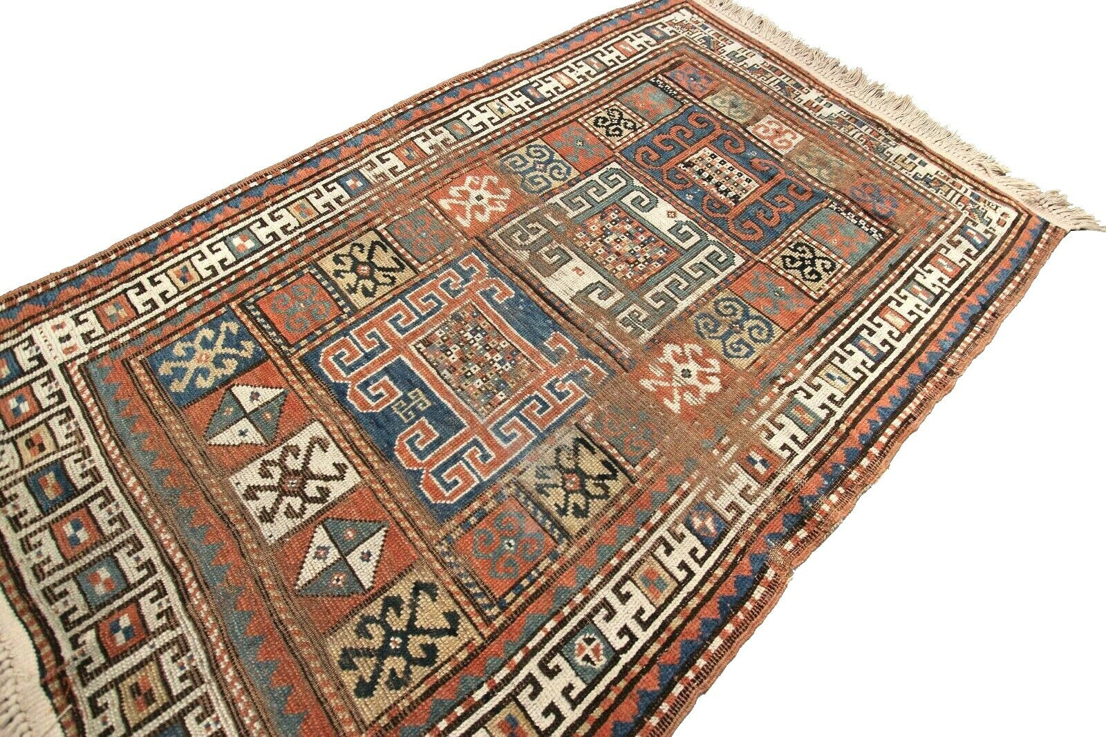4x6 Antique Caucasian Pinwheel Kazak Rug Rare Wool Tribal 109cmx173cm C.1880