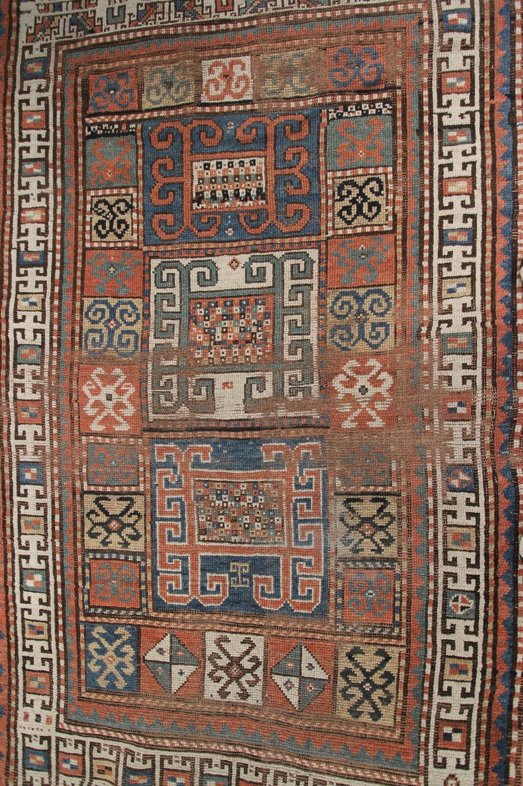 "This is a rare Antique Caucasian Pinwheel Kazak rug. It has a beautiful geometric design- exquisite piece "-DCR