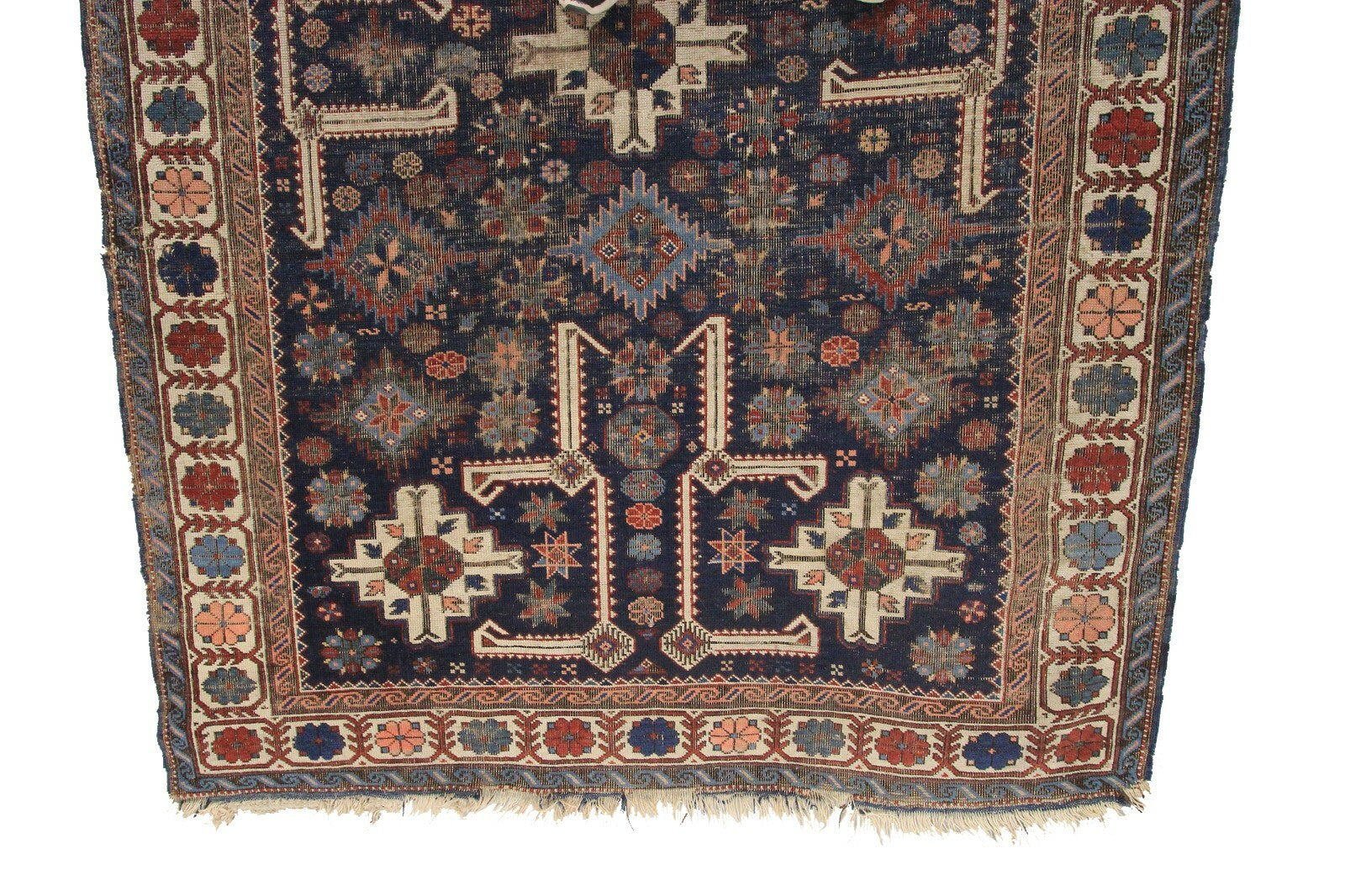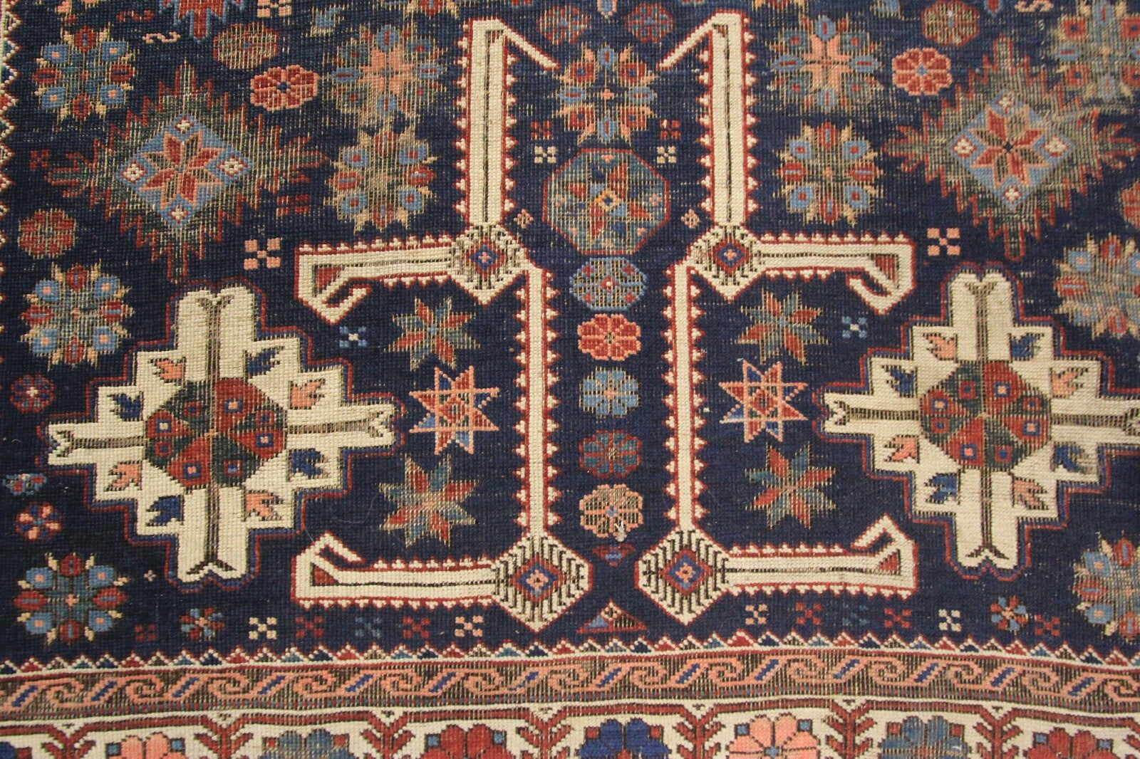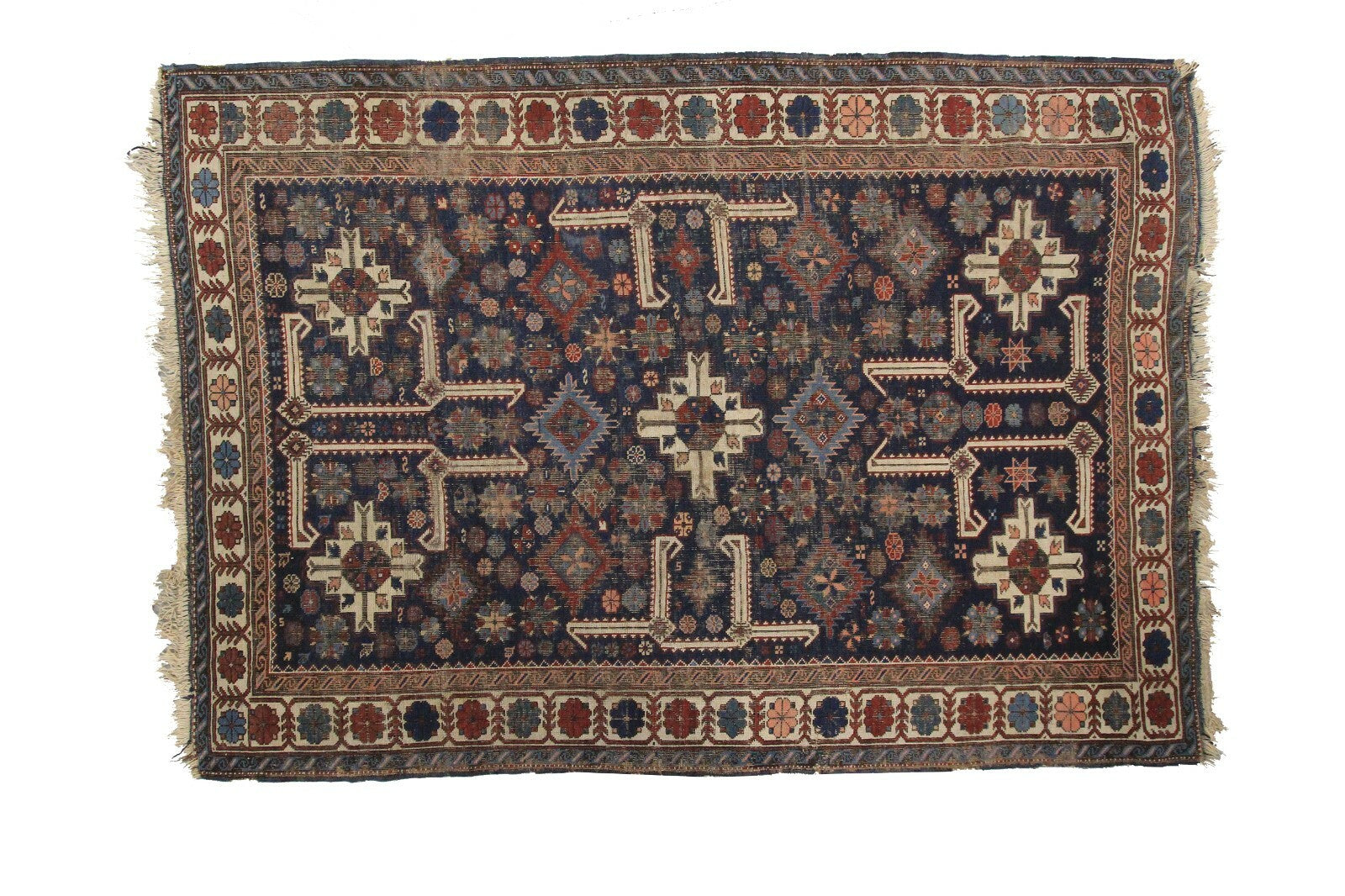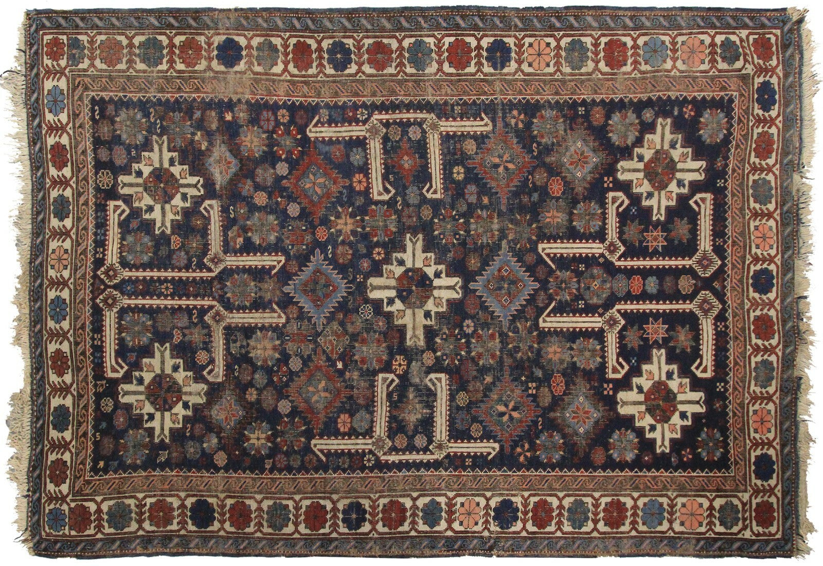 "This is a Antique Caucasian shirvan rug. This piece was acquired from a New Jersey Estate. It has a striking geometric design on wool foundation - fantastic piece "DCR