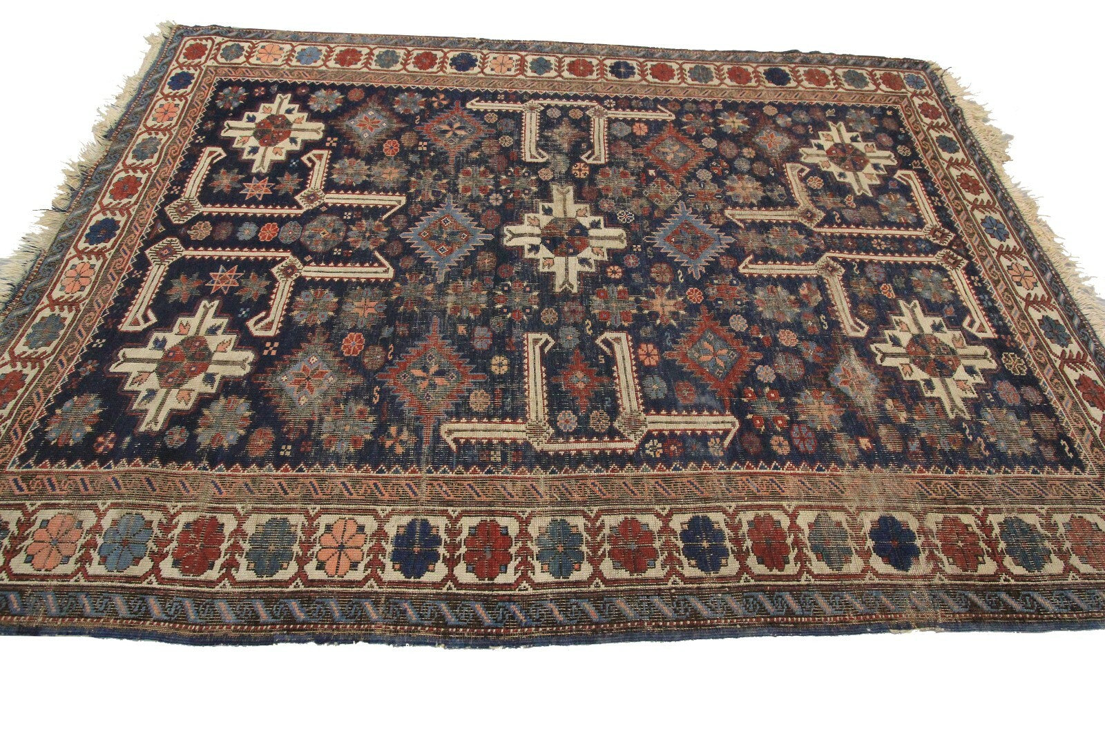 Authentic Antique Caucasian Shirvan Rug Geometric