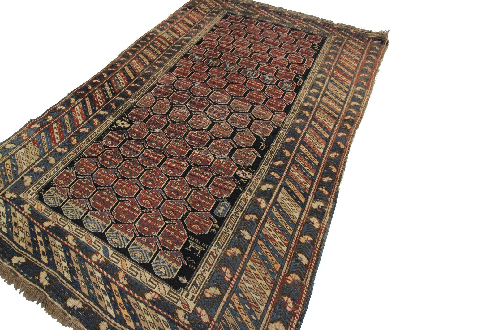 4X6 Authentic Antique Caucasian Shirvan Rug Kuba Blue 117cmX173cm c.1880