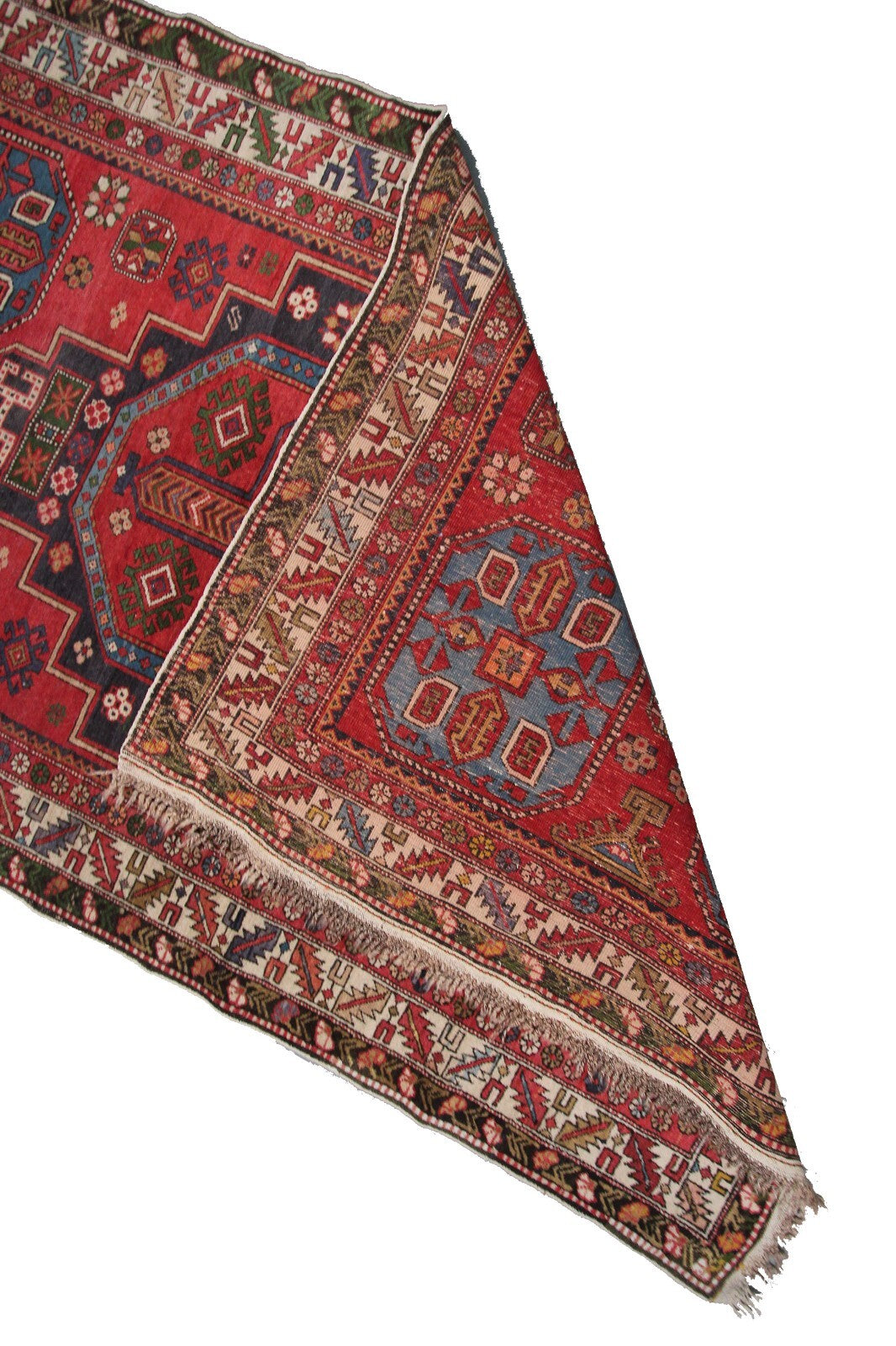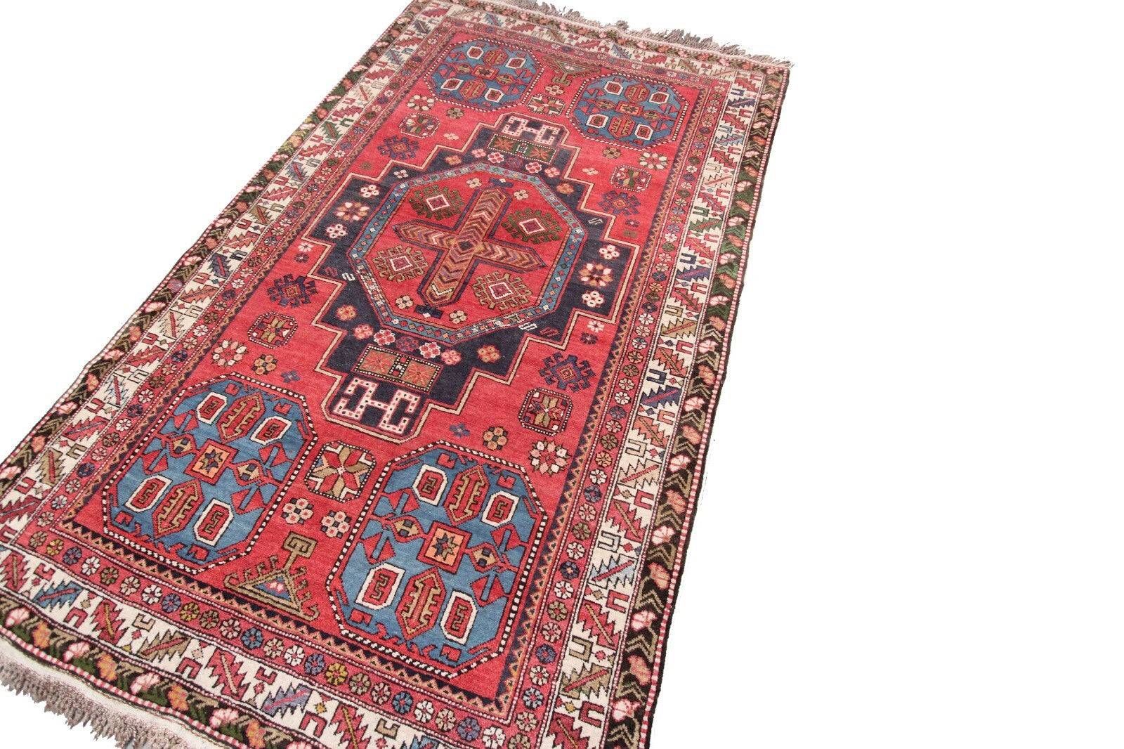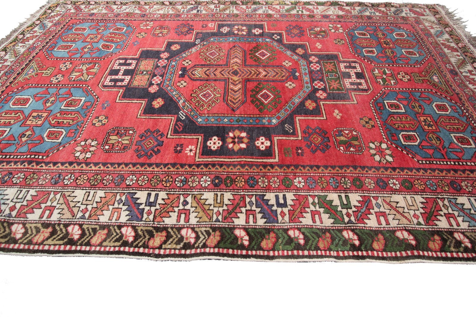 "This is an extremely rare, fine Antique rug from 1920. It has a remarkable geometric design and a unique rich color palette."