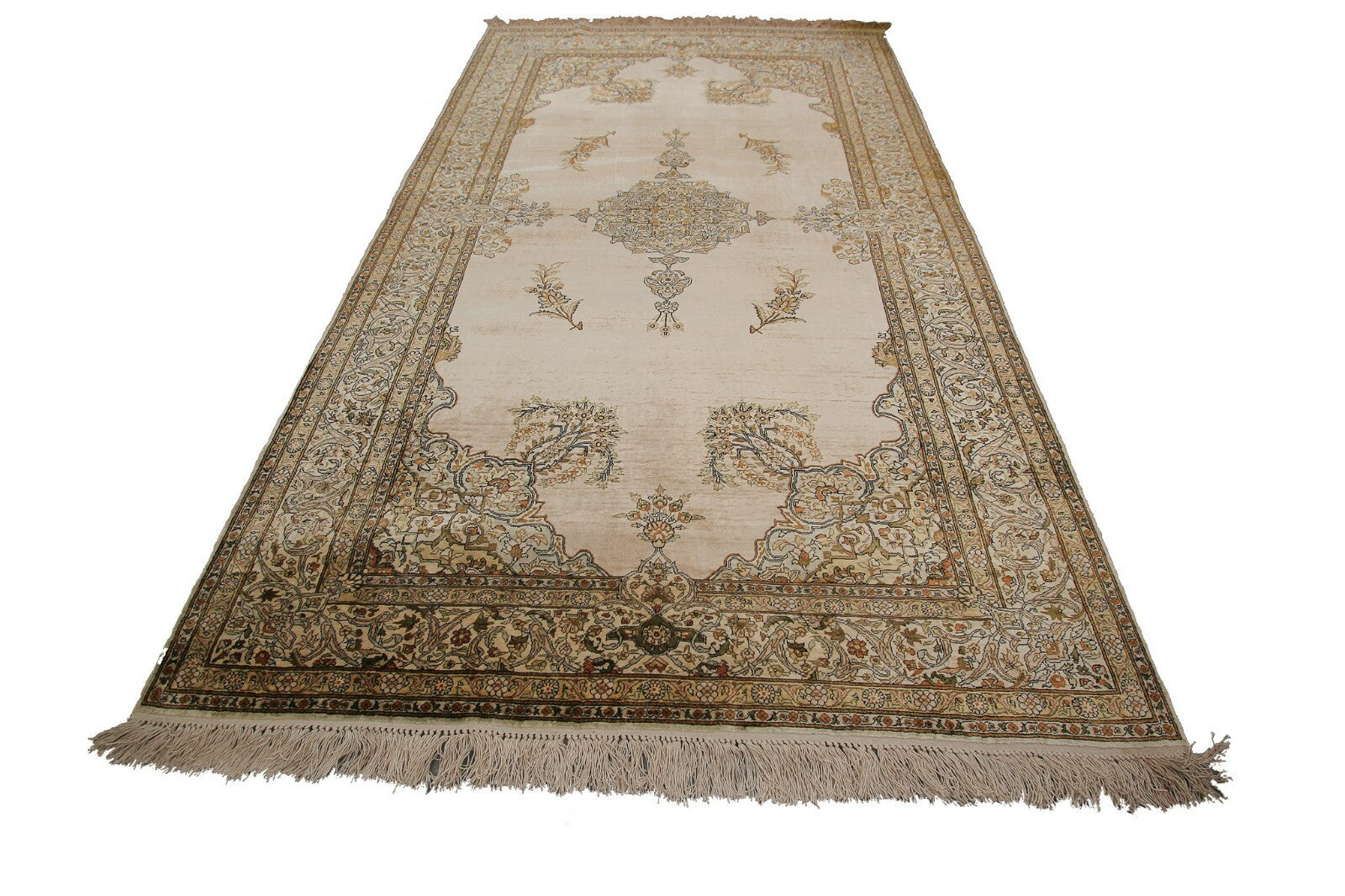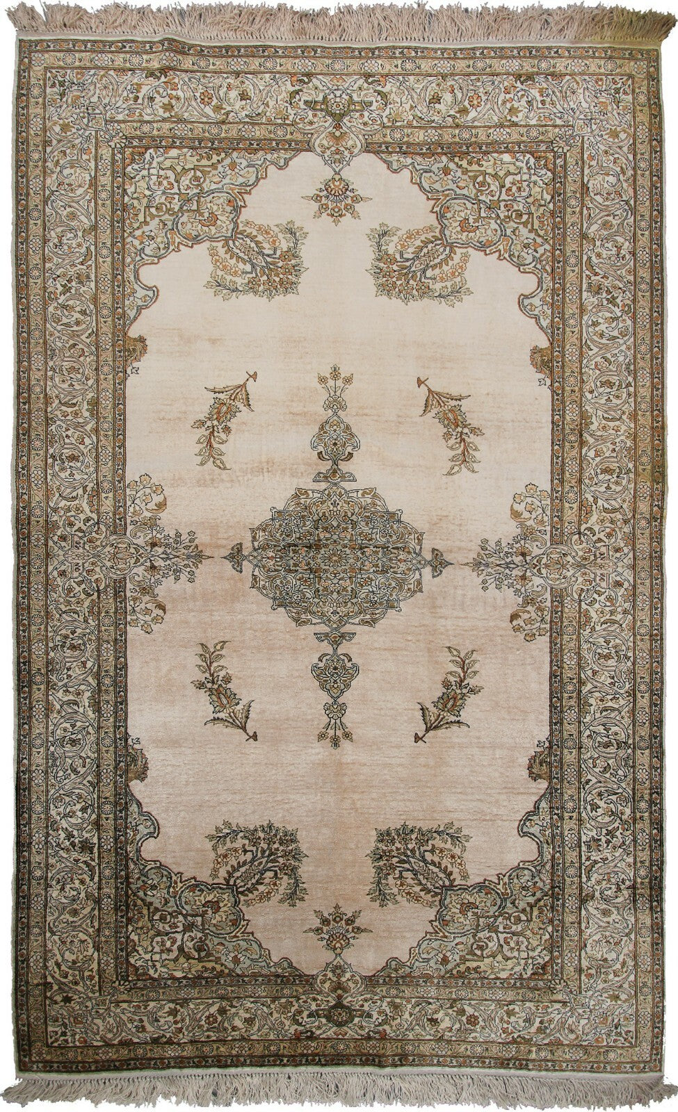 Museum Quality Rare Vintage 100% Pure Silk Hereke Rug Kaysari Rug Fine High Quality 4x6