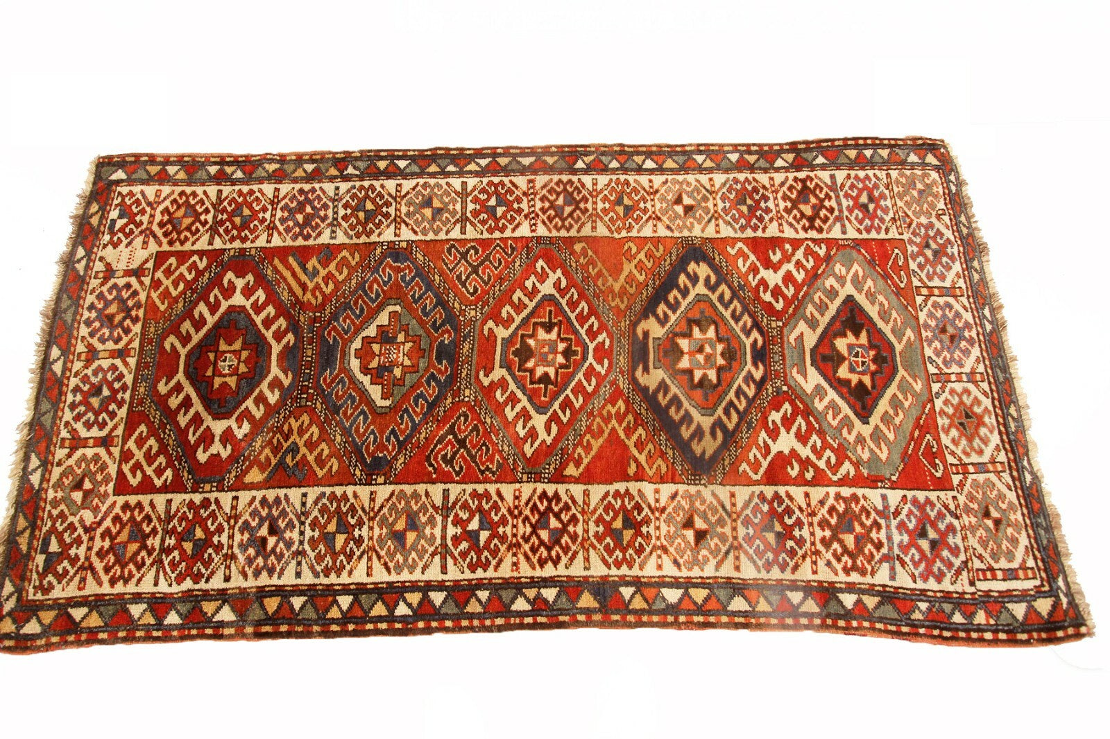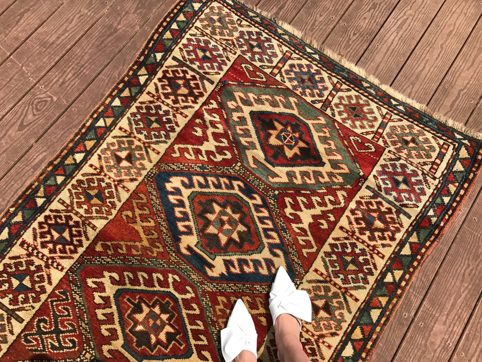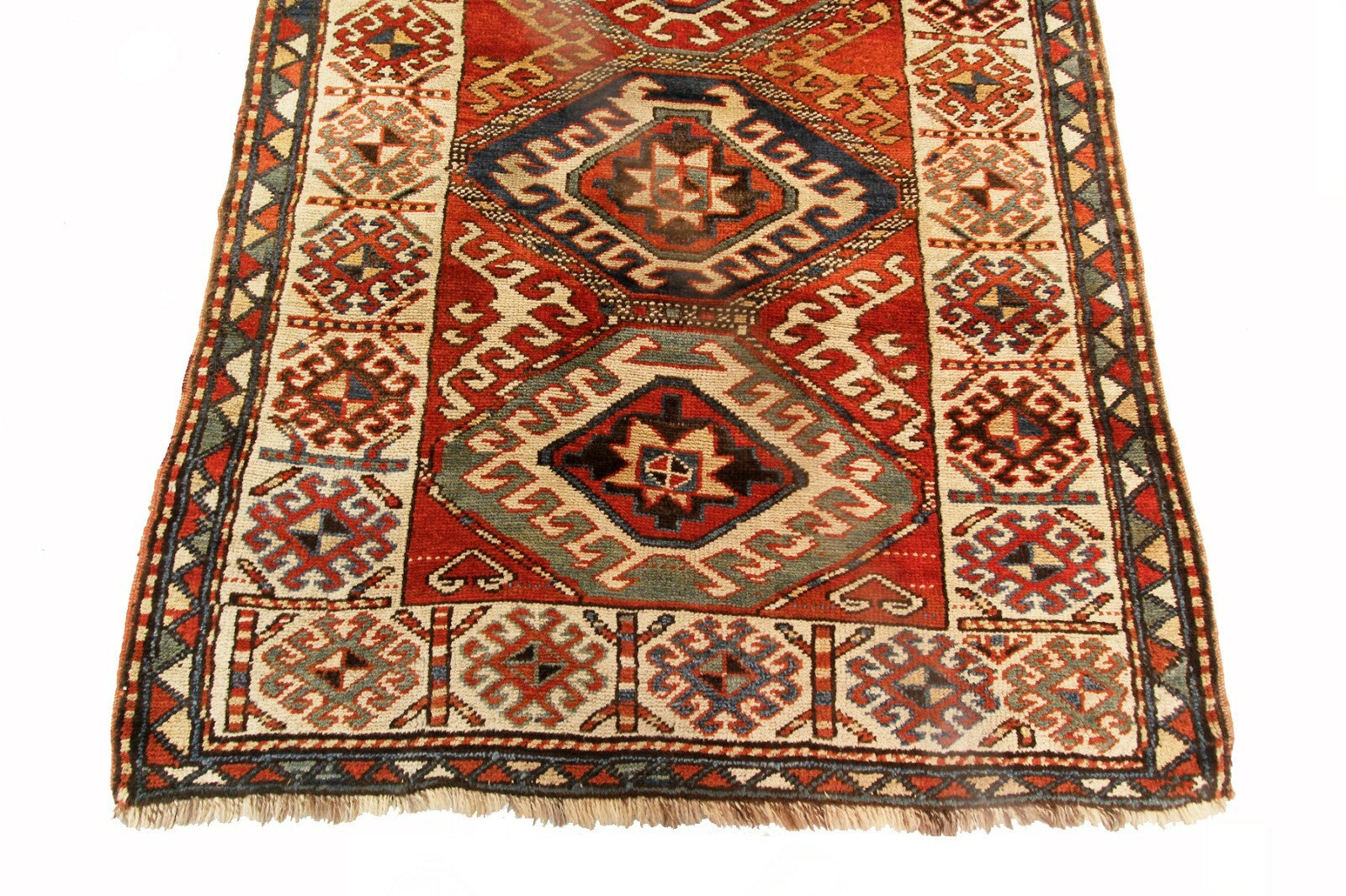 "This is a rare Antique Caucasian Kazak rug. It has a beautiful geometric design on wool foundation - exquisite piece "-DCR