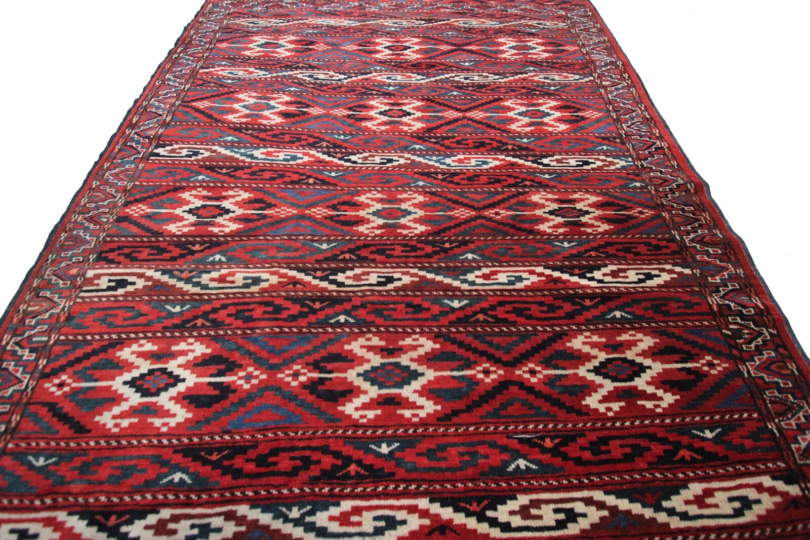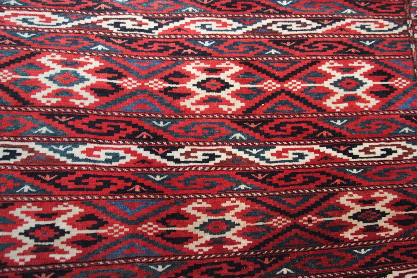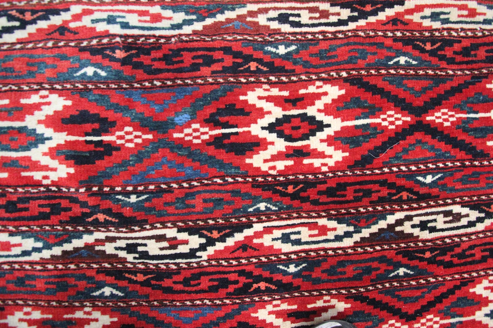 "This is a beautiful antique Turkoman rug with a beautiful geometric pattern. A cool, tribal feel, adding character to any room."-DCR