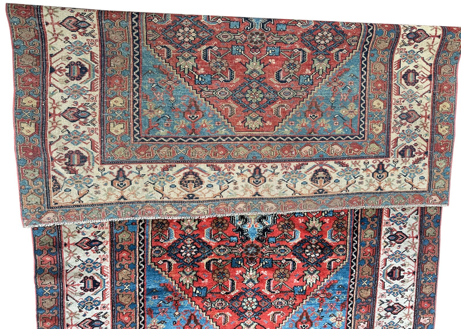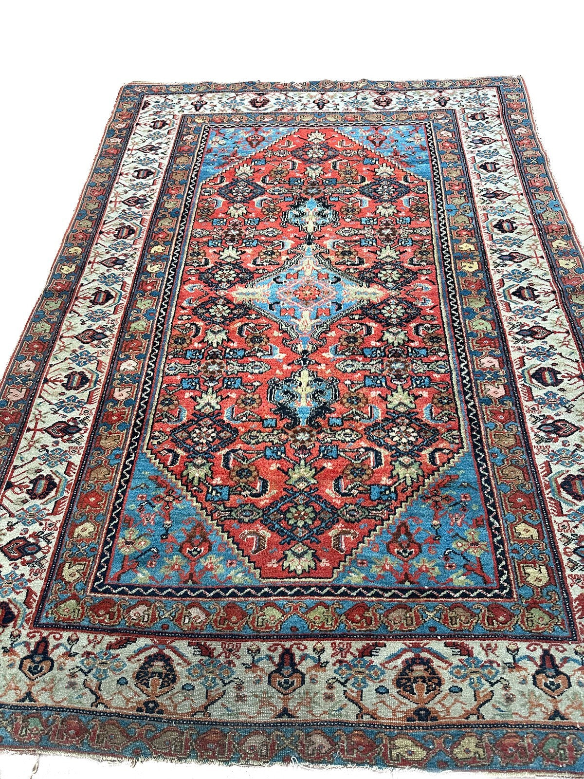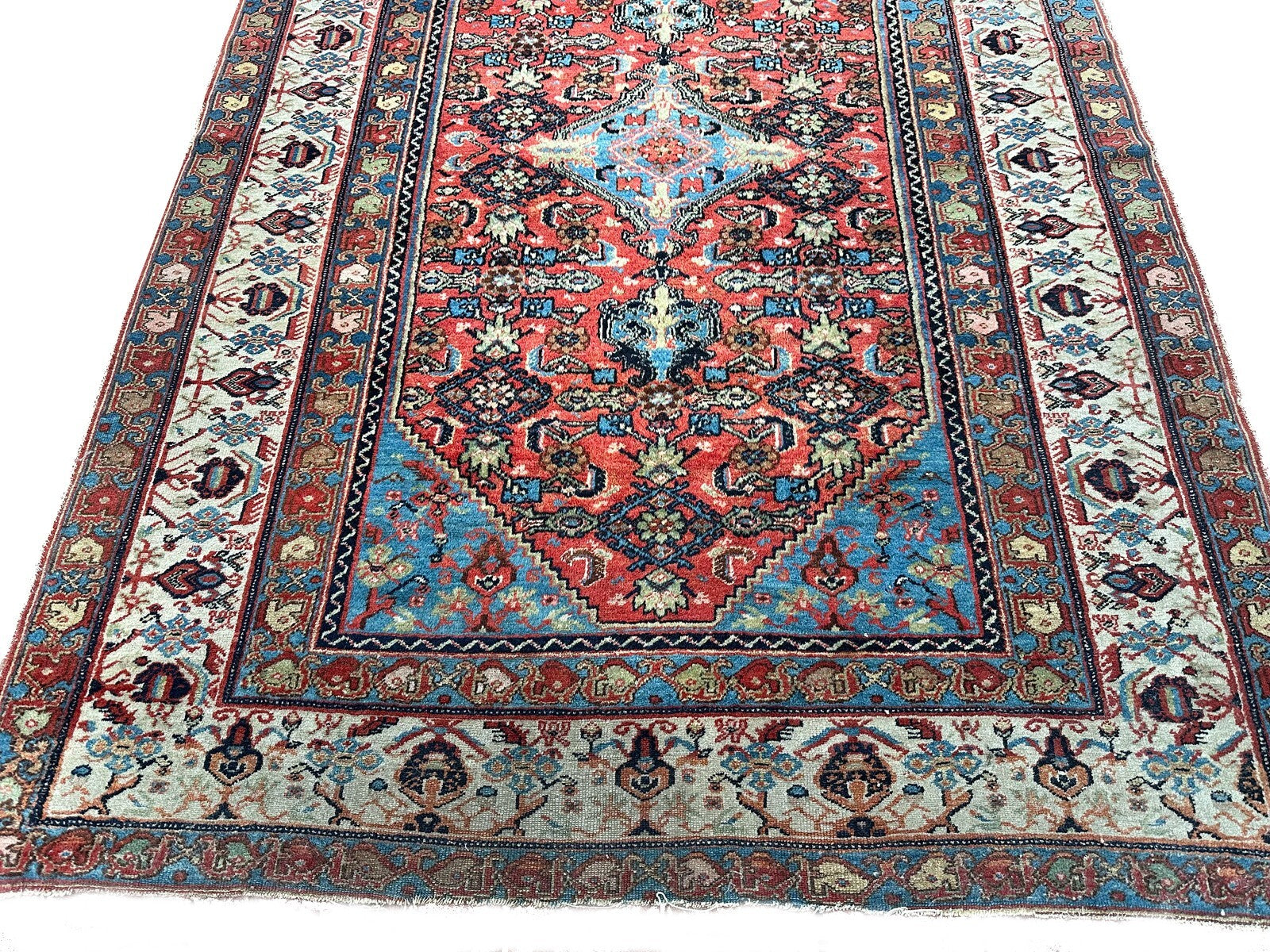 "This is a beautiful, exceptionally fine antique traditional rug. It has a rare geometric design in a stunning rust and blue color palette - an incredible buy! -DCR