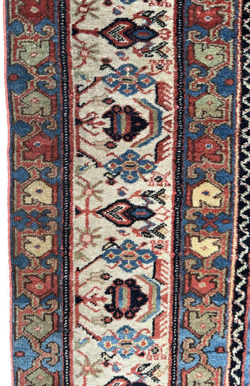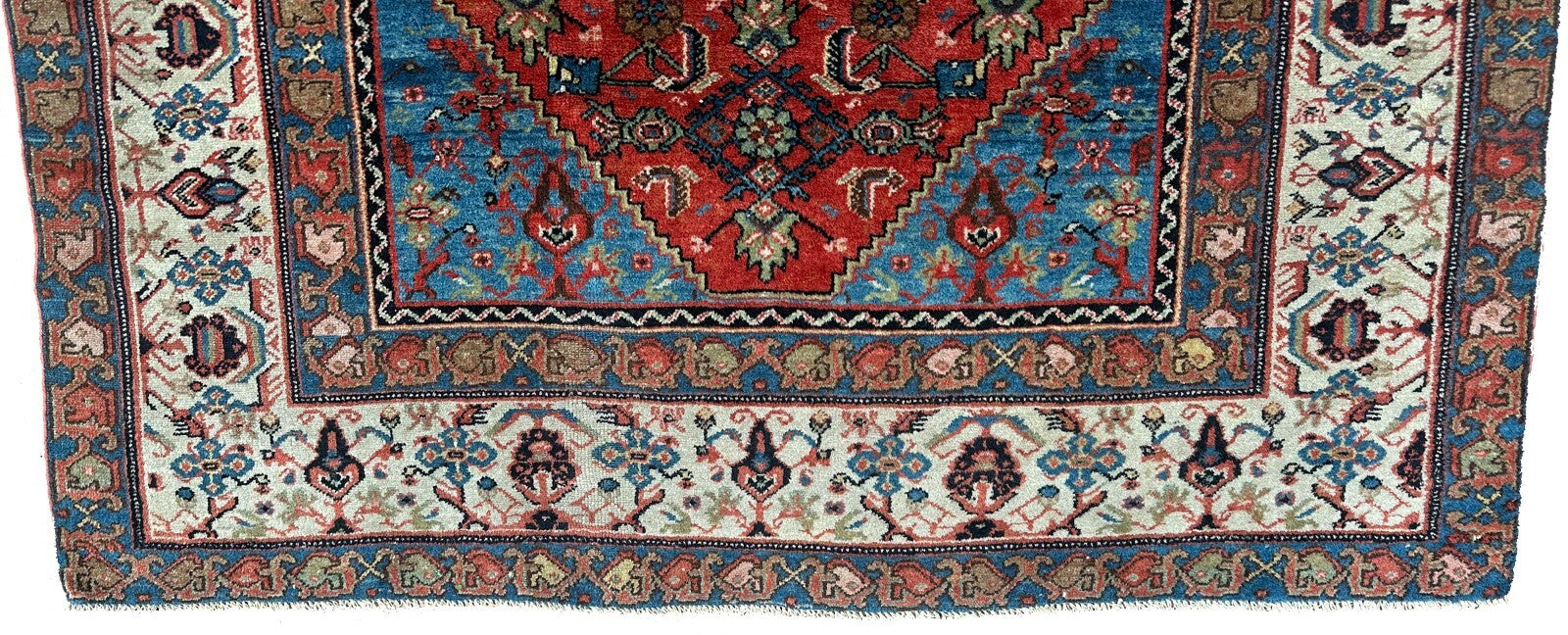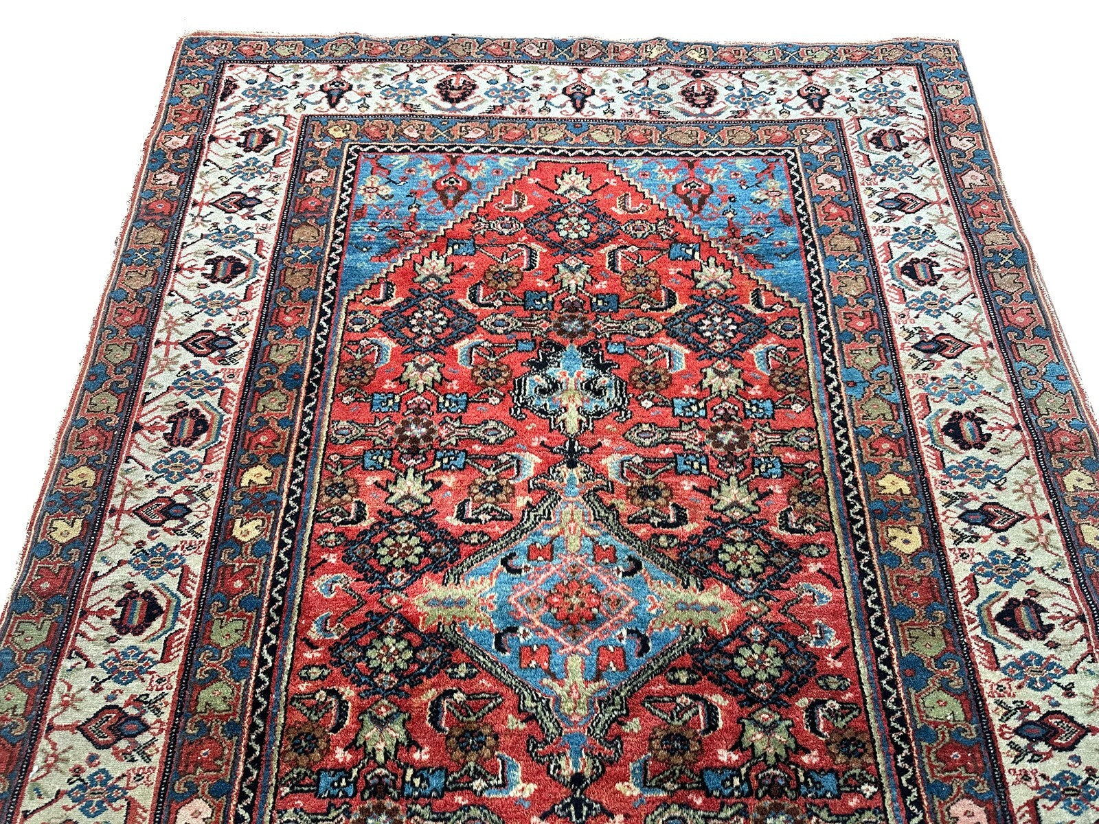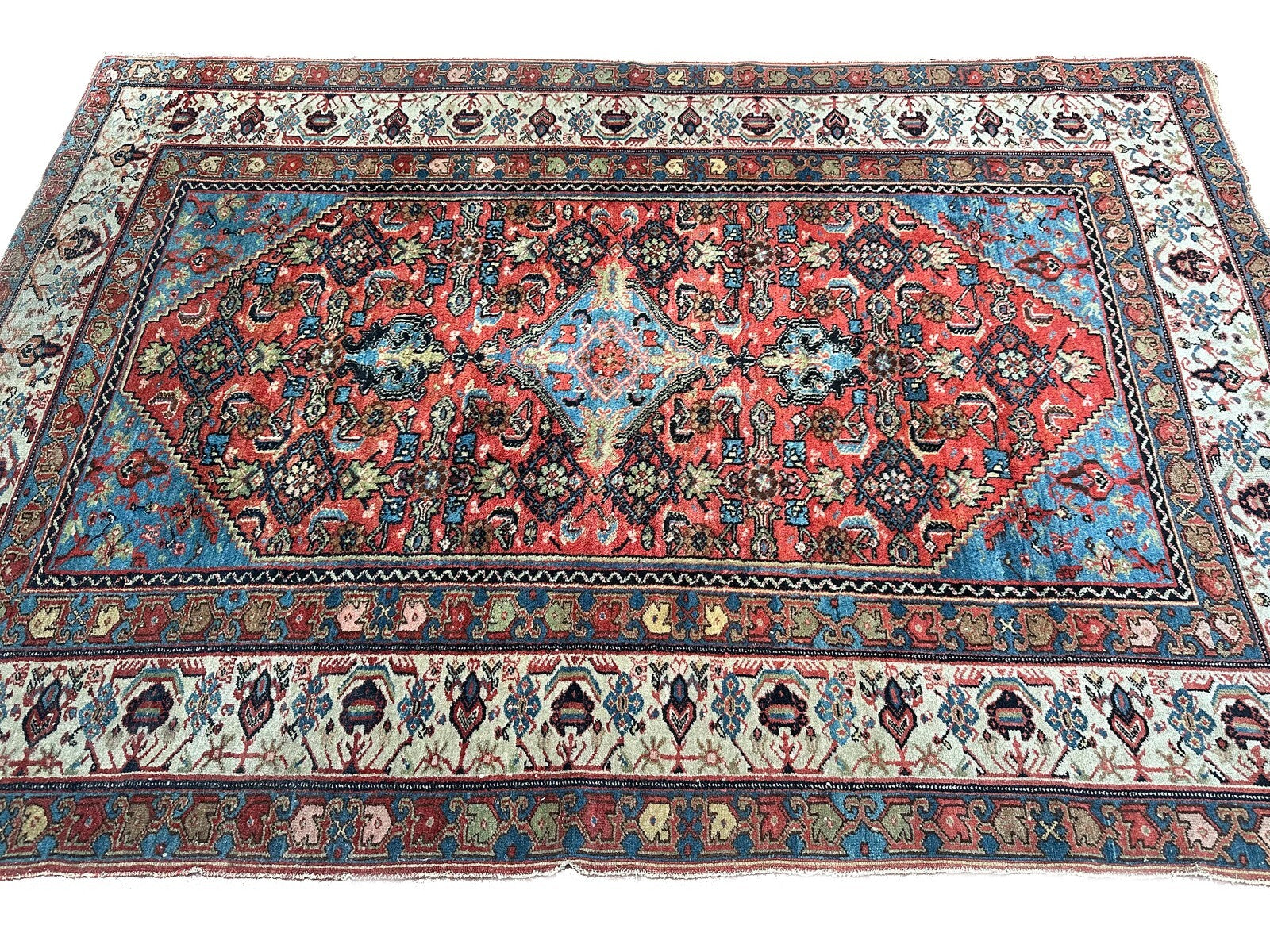 "This is a beautiful, exceptionally fine antique traditional rug. It has a rare geometric design in a stunning rust and blue color palette - an incredible buy! -DCR