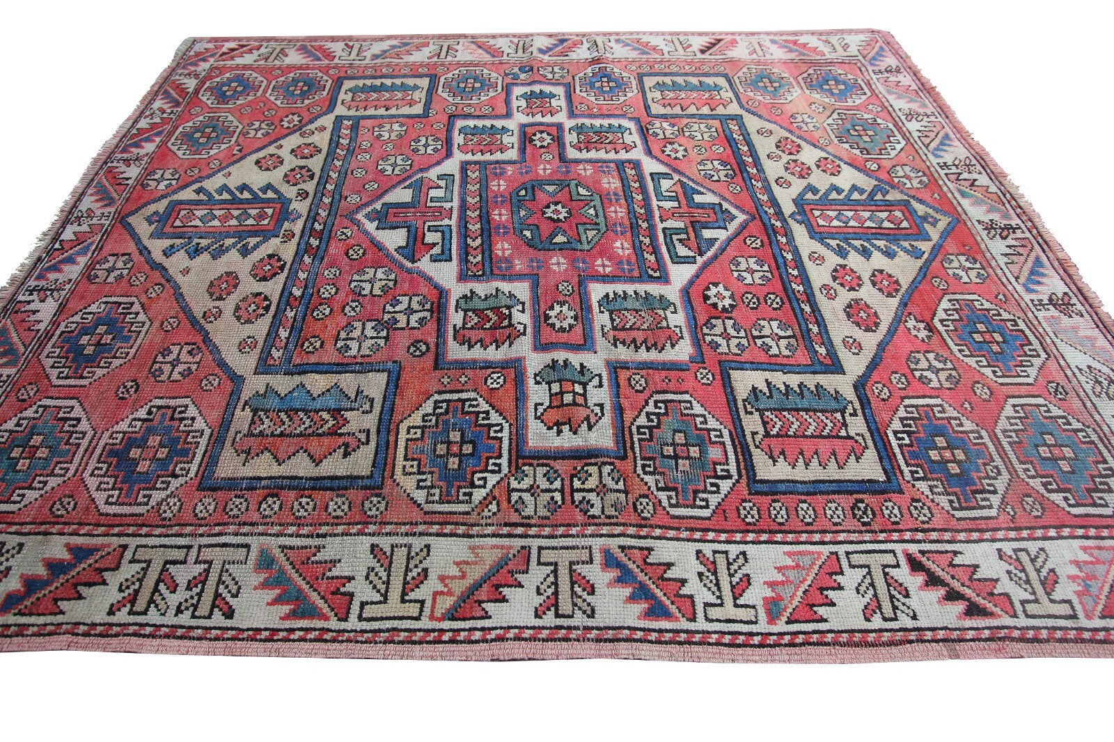 • Load image into Gallery viewer,  5x6 Antique Turkish Bergama Rug Kazak Collectors Rug Pink 147cmx178cm C.1890