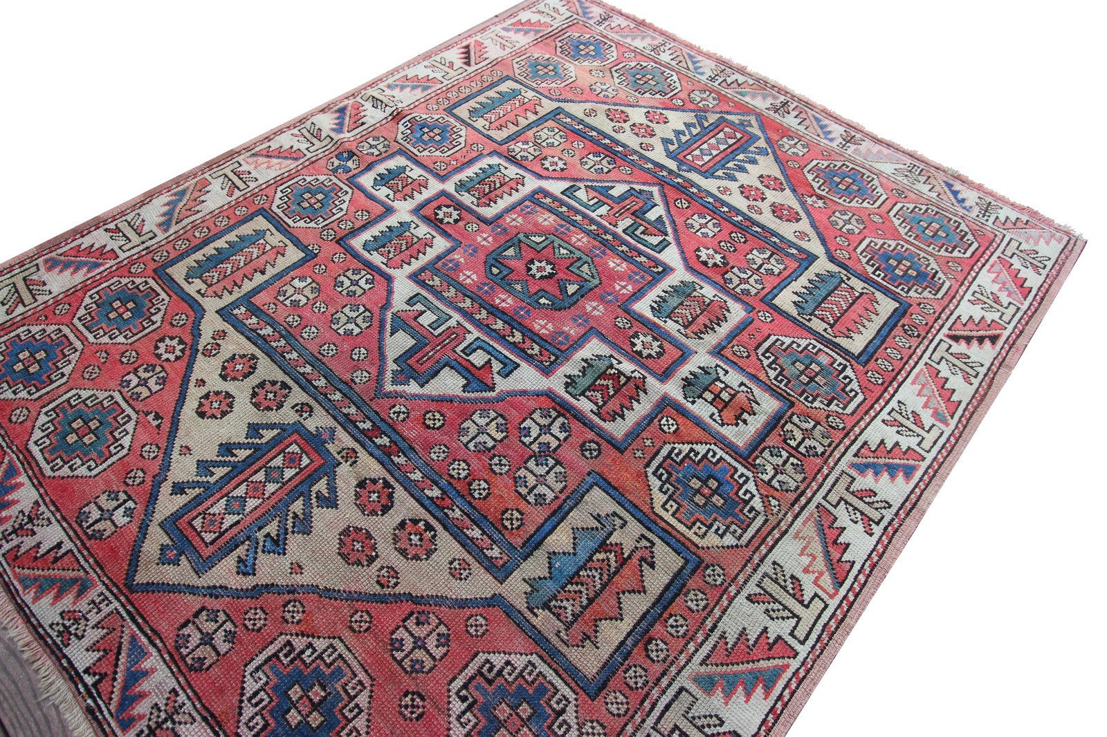 5x6 Antique Turkish Bergama Rug Kazak Collectors Rug Pink 147cmx178cm C.1890