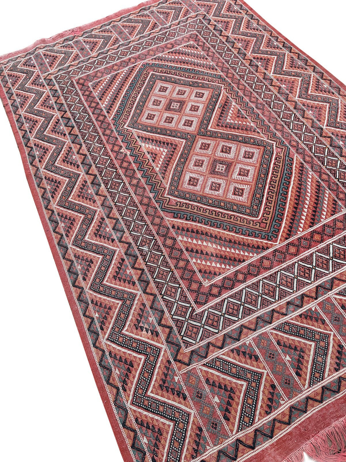 "Magnificent vintage soumak in a stunning pink tone on tone colorway and cool geometric design"-DCR
