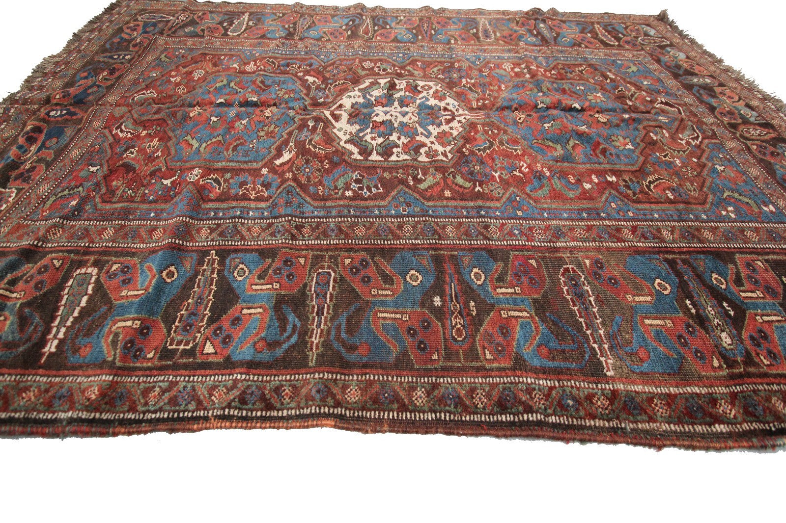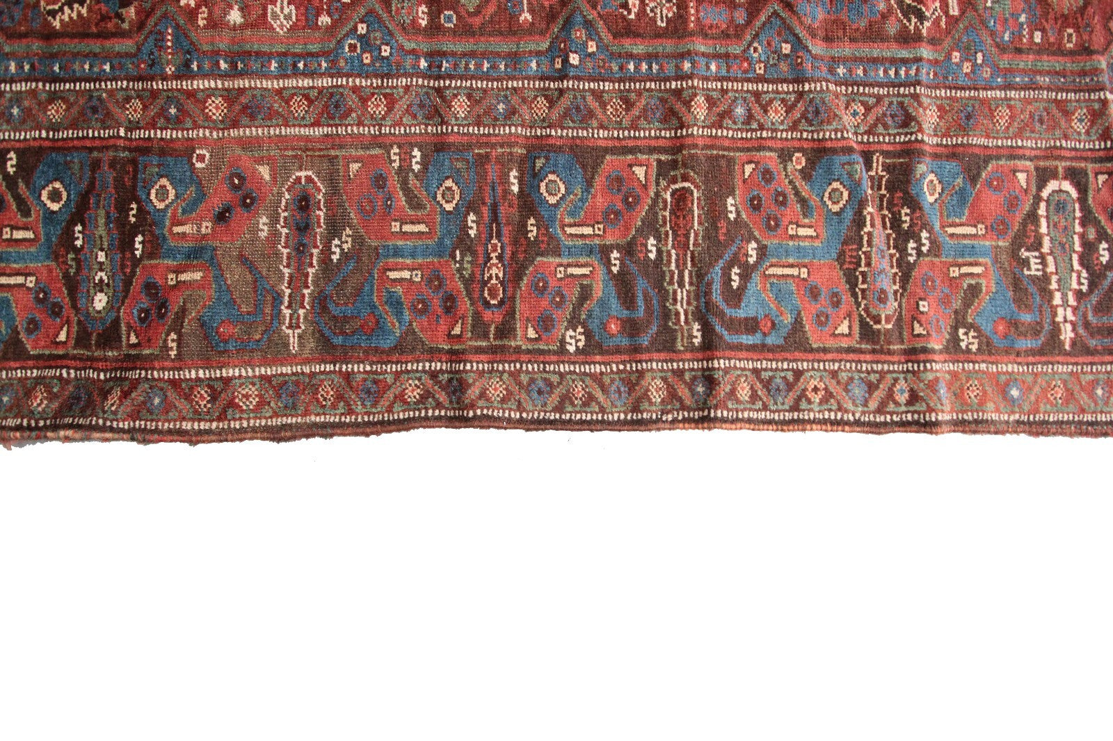 This genuine hand knotted antique tirbal rug by Designers Choice Rugs is a true beauty. With its geometric motifs and Birds, this rug portrays an exquisite opulence.