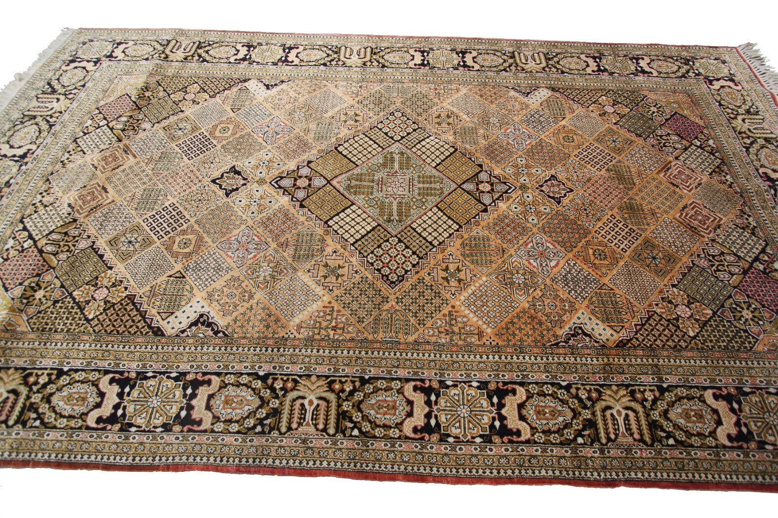 "This is an exceptionally fine vintage silk Persian Ghom handmade rug. It has an unbelievable snowflake design overall and is made of 100% pure natural silk on silk foundation- a true masterpiece!"-DCR