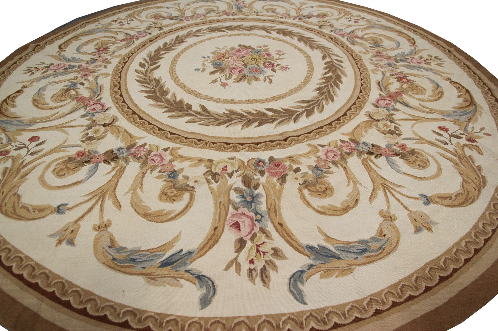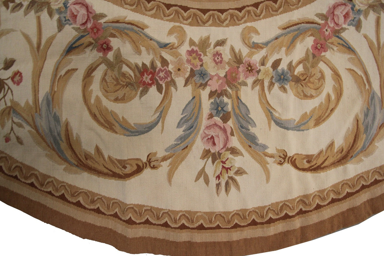 "This is a very fine, Rare flat woven piece with magnificent Design. It is a great example of a round antique French Aubusson rug. - truly exquisite antique rug!"-DCR