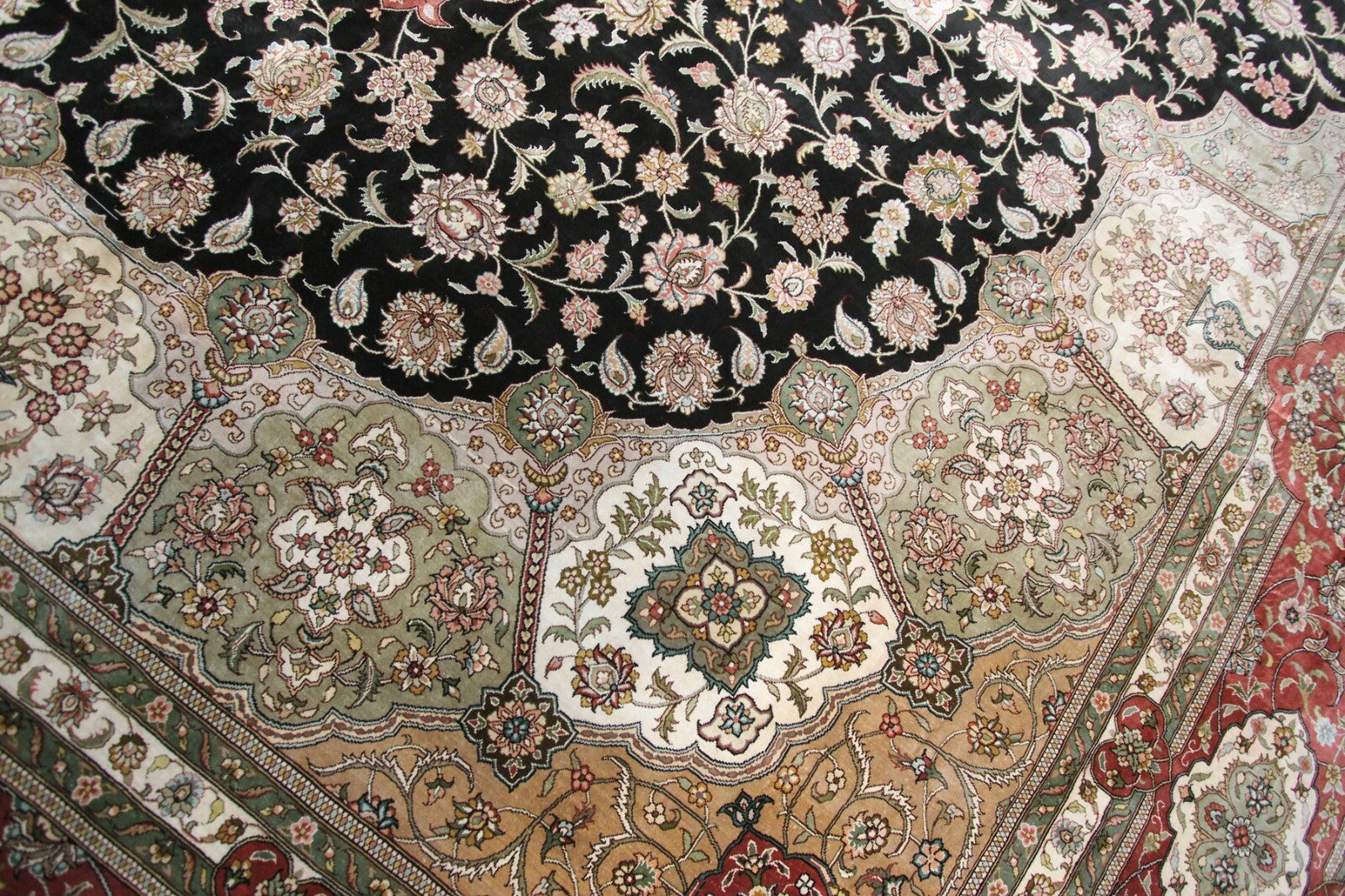 "This is a spectacular and rare Exceptionally fine pure Natural silk rug with a silk foundation. It is a true work of art. It is an exceptionally fine piece with extraordinary artistic floral design- Collector quality!".