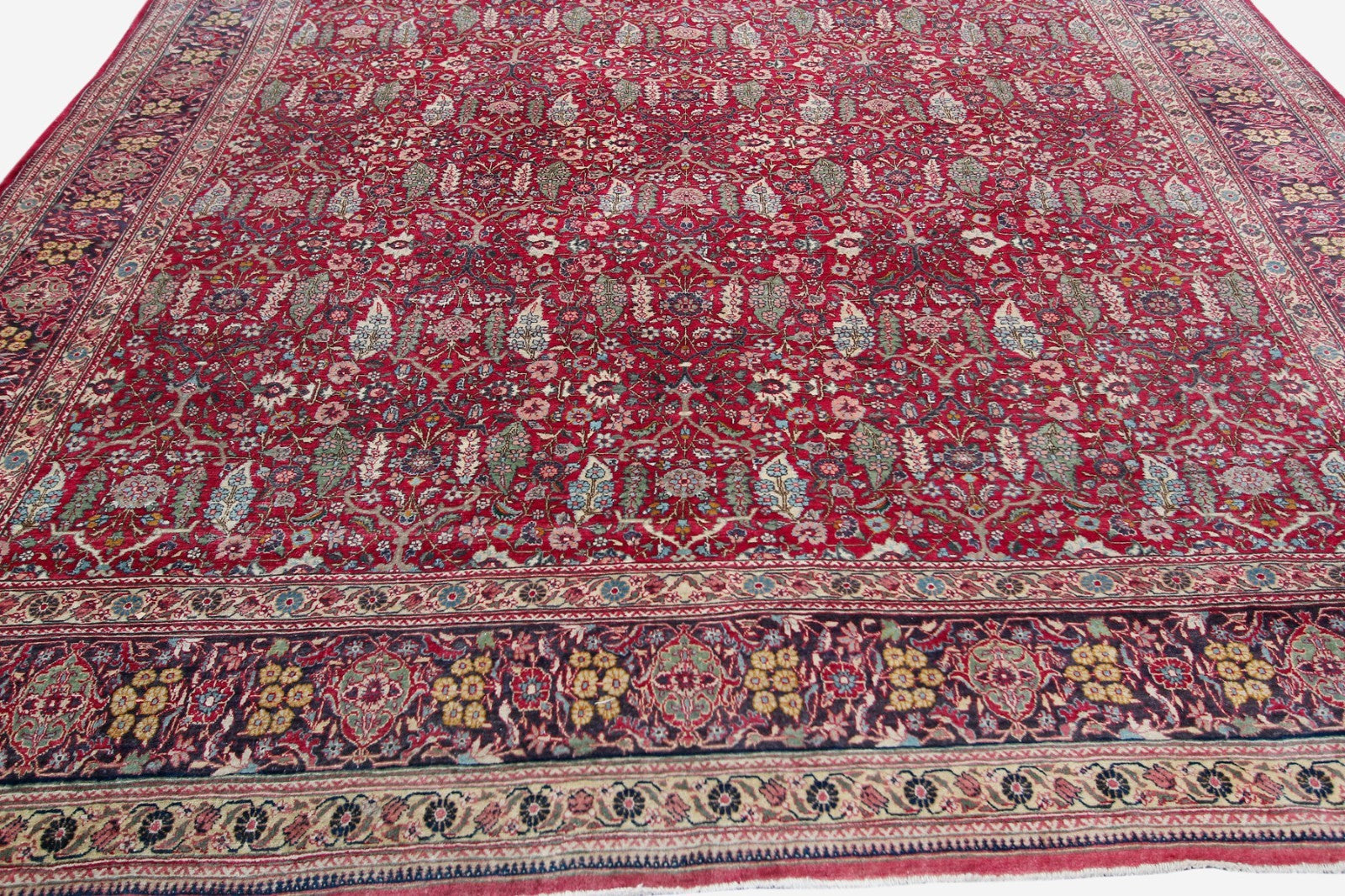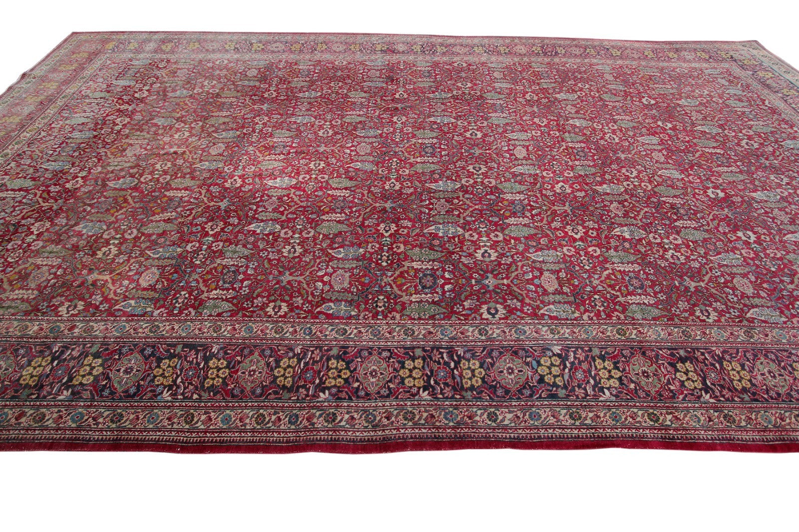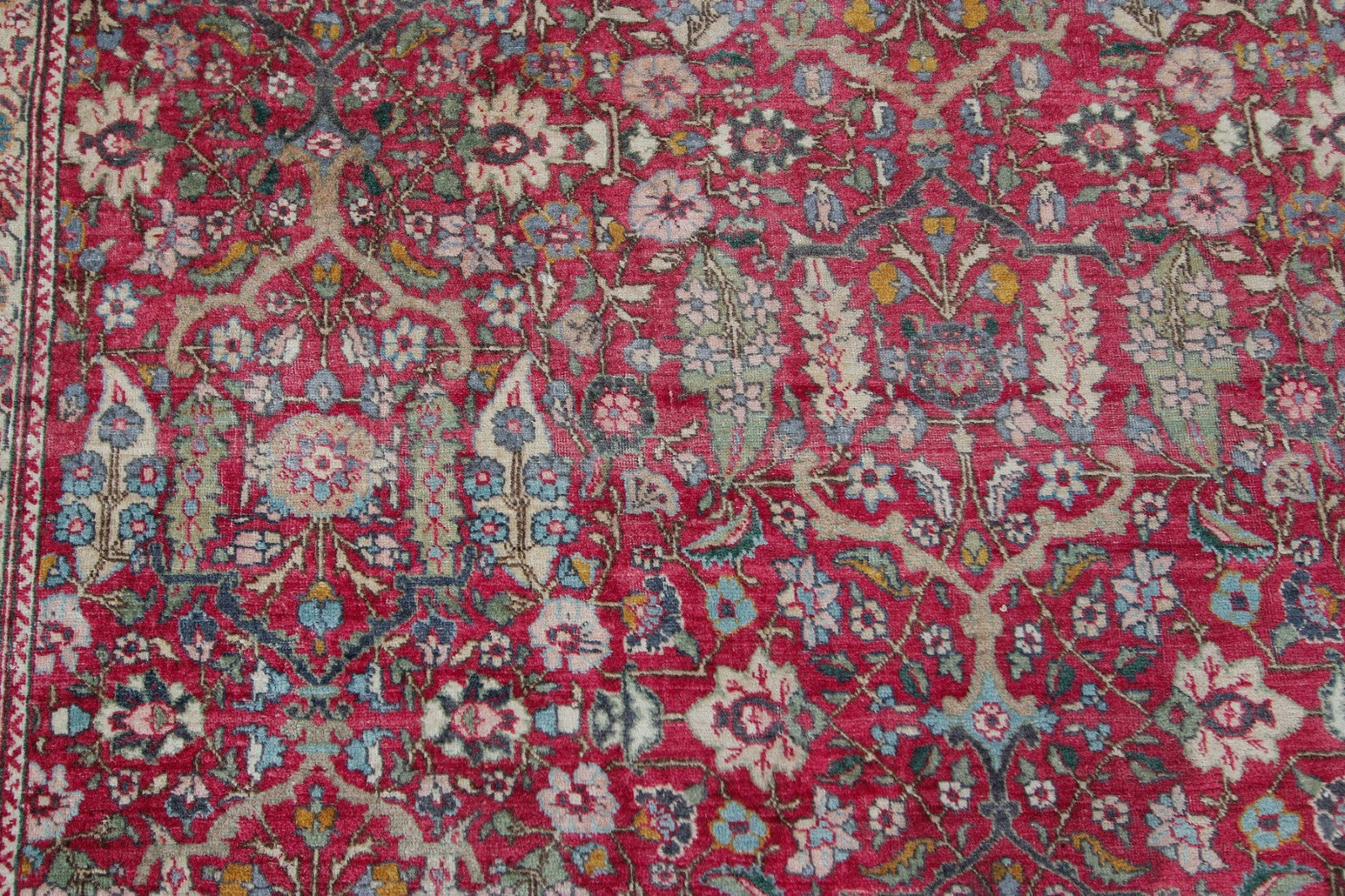 "This is an incredible pre 1900's Tabriz Rug. This rug was recently acquired from an estate, with a very fine weave and rare overall leaf design- True artisan workmanship."