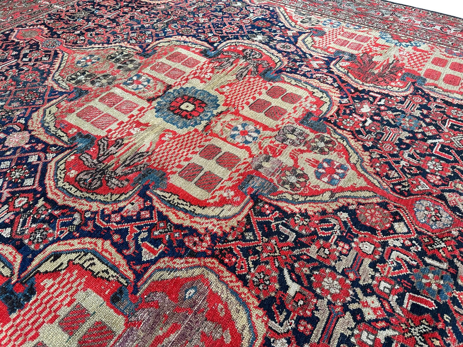 "This is a truly magnificent rare antique Mahal Sultanabad rug. It has an overall geometric design. It was acquired from a Manhattan NY estate.  Soft tones- Artistic design, easy to work with" -DCR