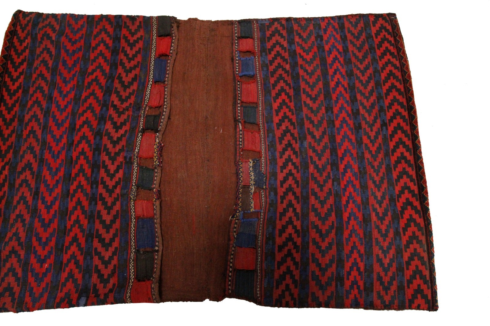" This is a magnificent Antique Saddlebag Rug that was used on horses. It has a geometric design pile rug on one side and is flat woven on the saddle side. It is in great condition with two minor rewoven areas. We love the beautiful tribal design on this special piece- Great character piece."