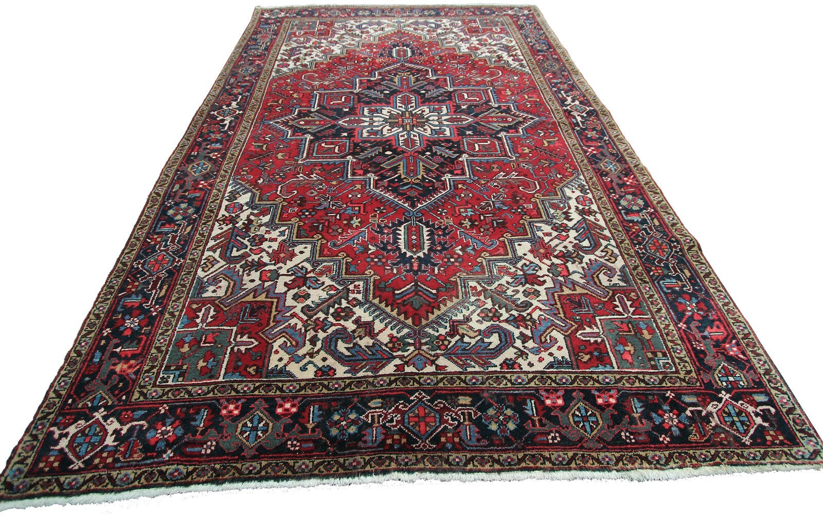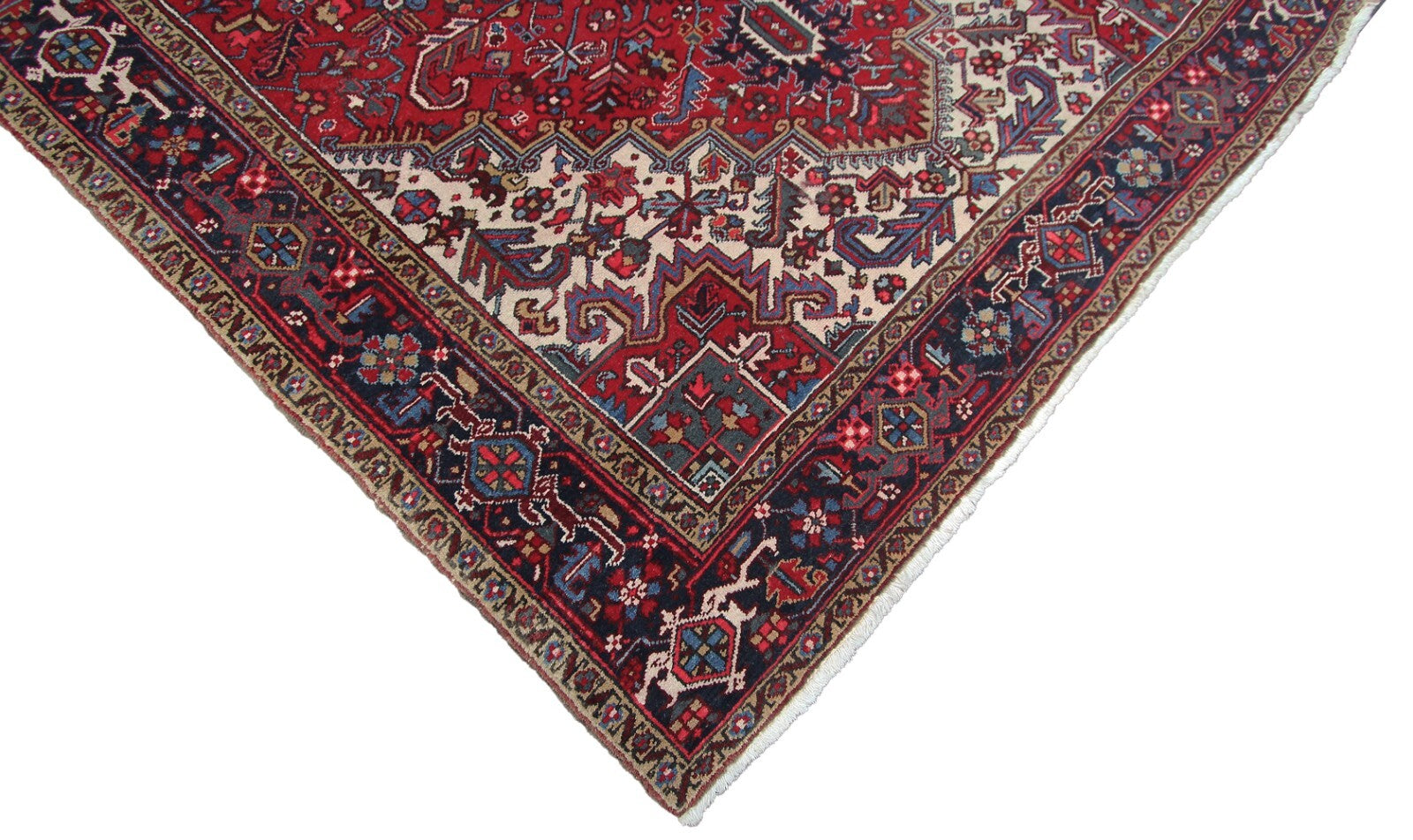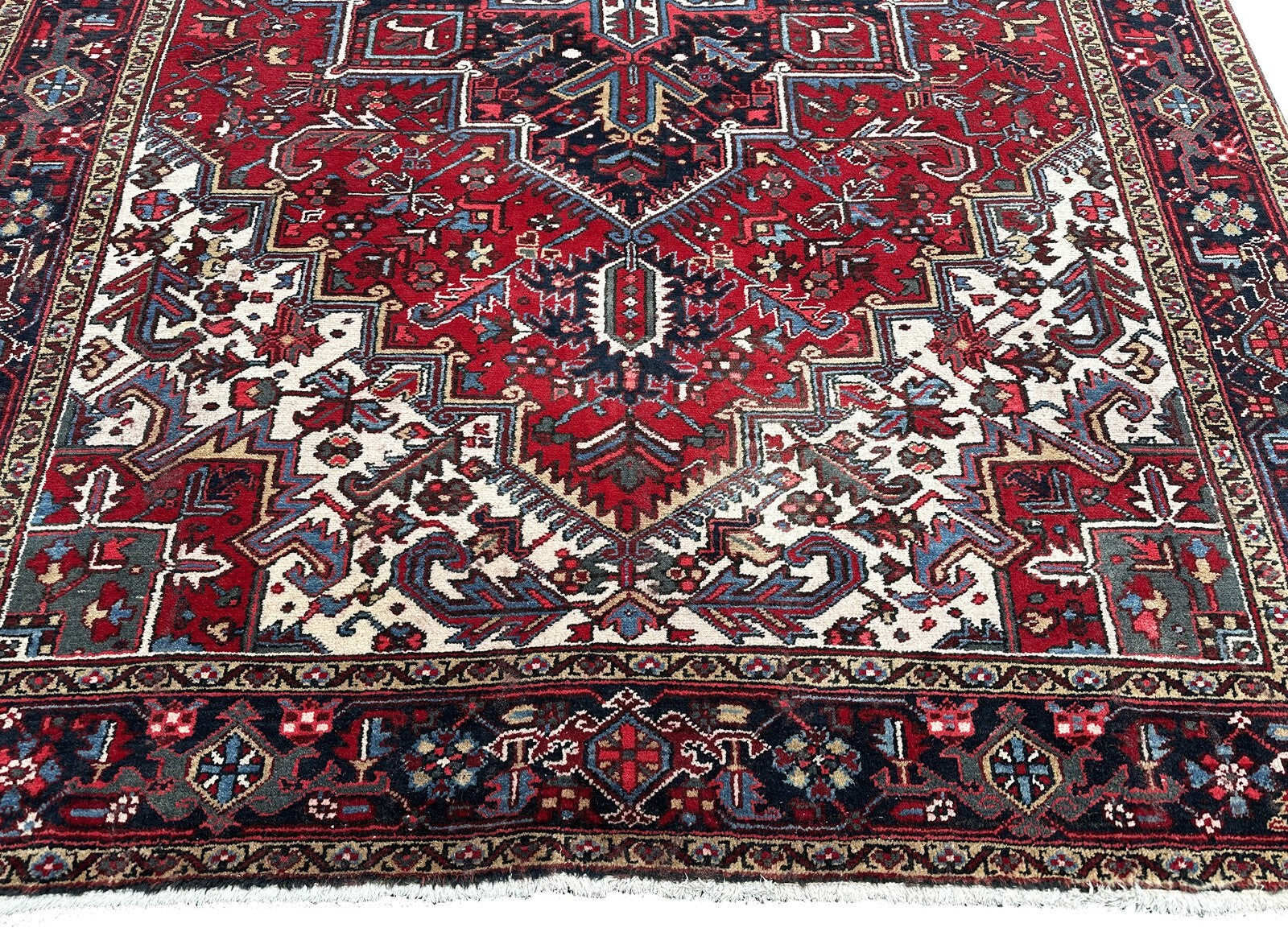 "This is a magnificent piece in a geometric medallion design. It came from a prominent Manhattan, New York Estate. This rug has been professionally cleaned. The cold climate helps nurture strong, quality sheep's wool. Because of this, Heriz Serapi rugs are often considered among the most durable antique rugs ever made." -DCR