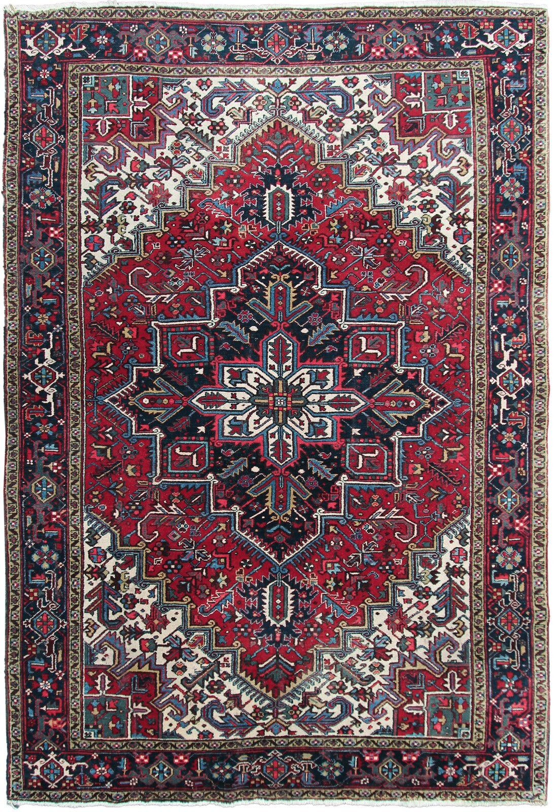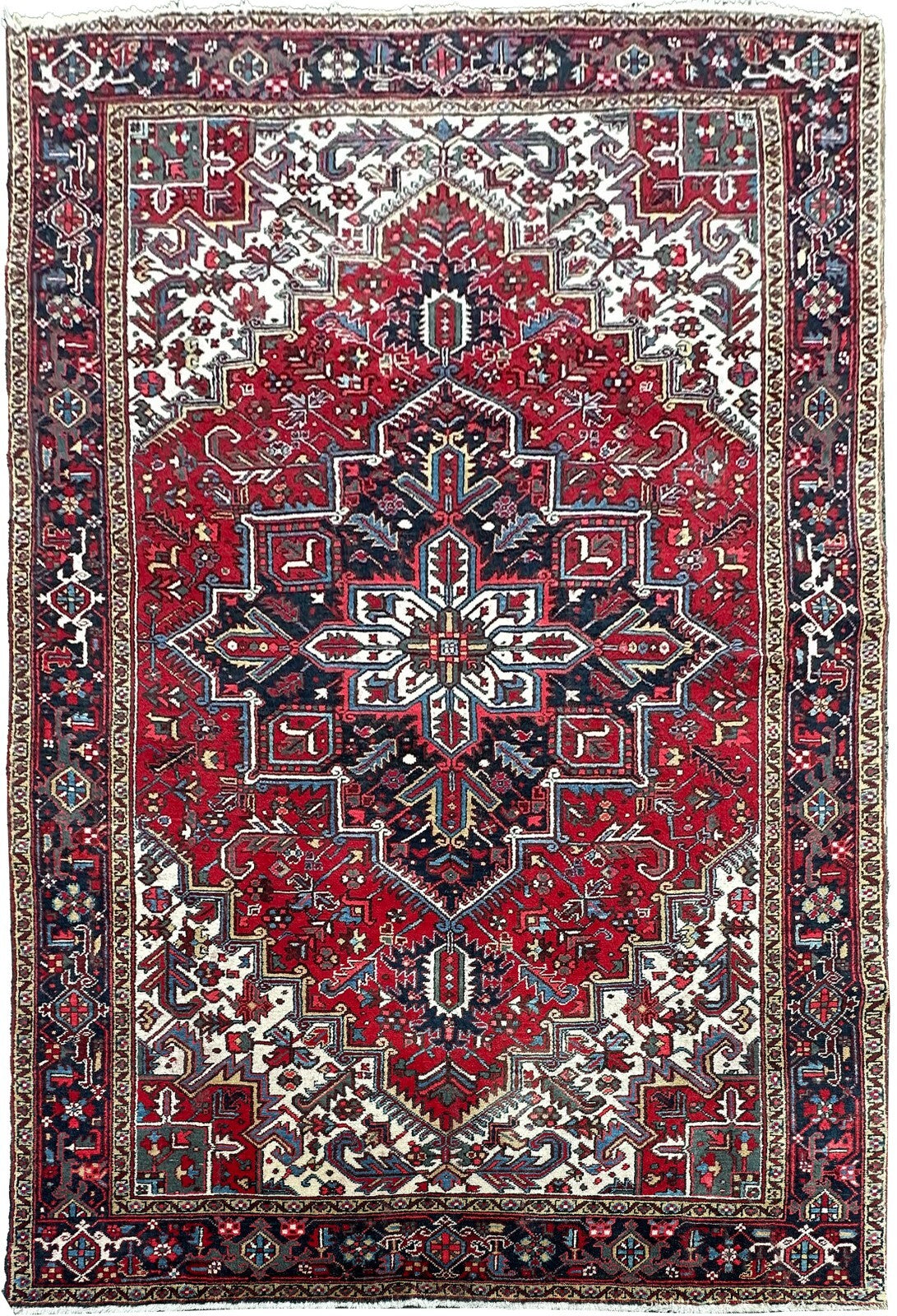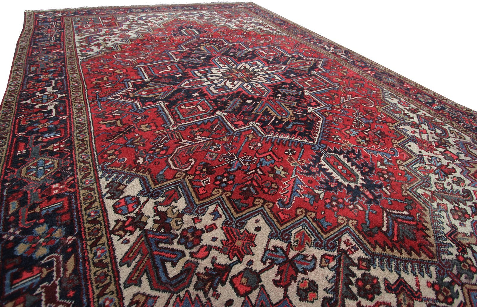 "This is a magnificent piece in a geometric medallion design. It came from a prominent Manhattan, New York Estate. This rug has been professionally cleaned. The cold climate helps nurture strong, quality sheep's wool. Because of this, Heriz Serapi rugs are often considered among the most durable antique rugs ever made." -DCR