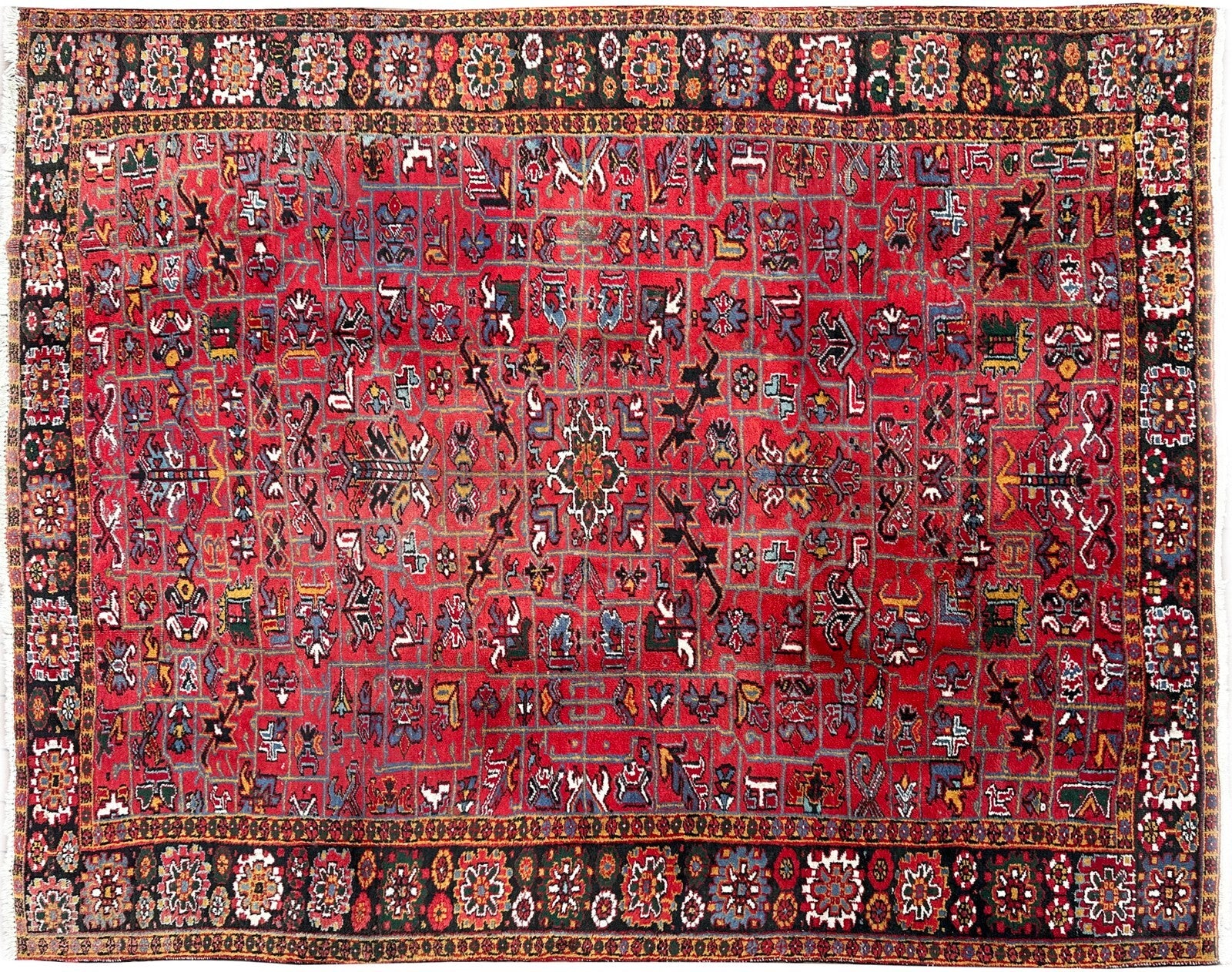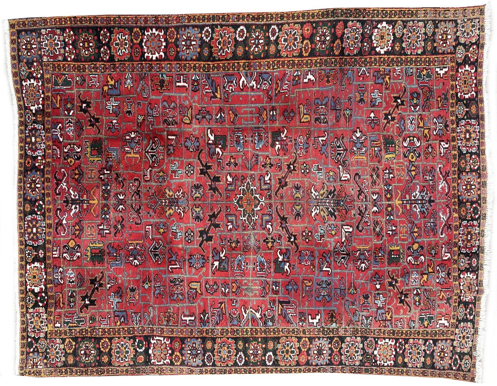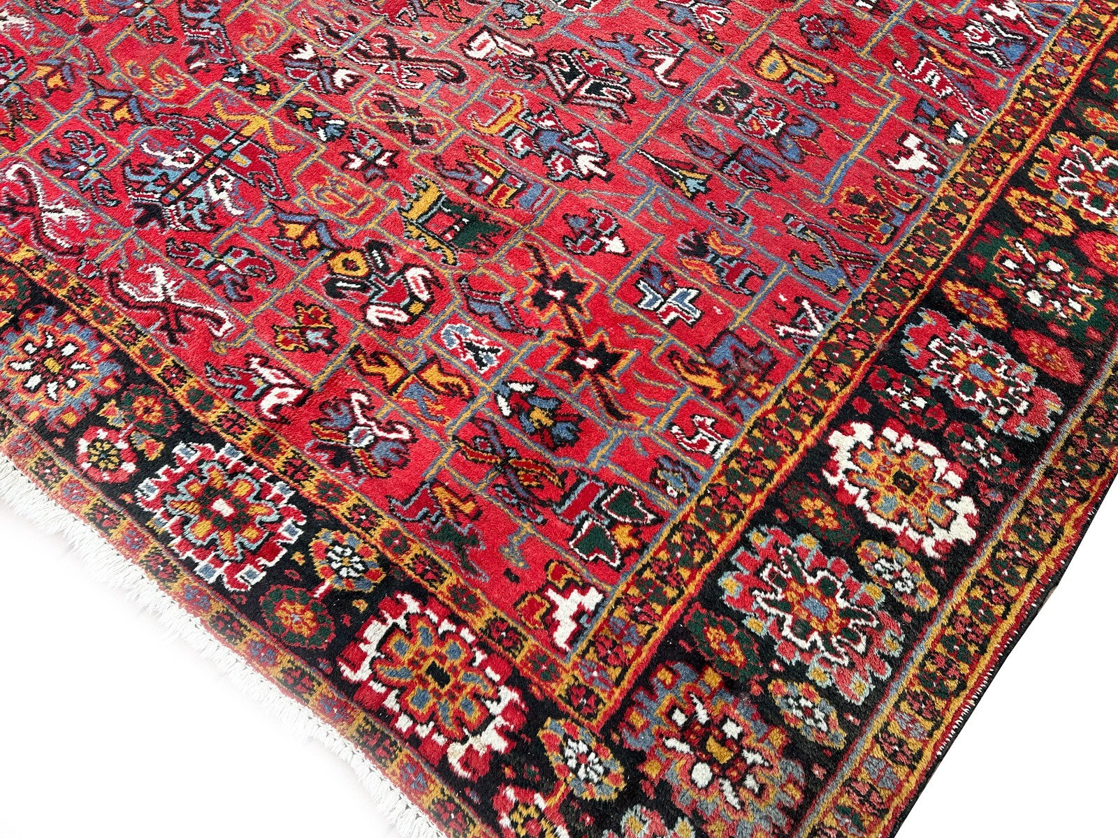 " This is a beautiful geometric overall design Antique piece in a magnificent red colorway. It came from a prominent Manhattan, New York Estate. This rug has been professionally cleaned. The cold climate helps nurture strong, quality sheep's wool. Because of this, Heriz Serapi rugs are often considered among the most durable antique rugs ever made."-DCR