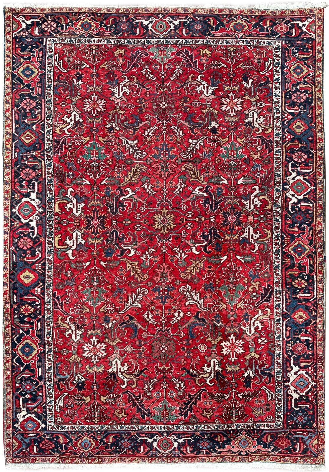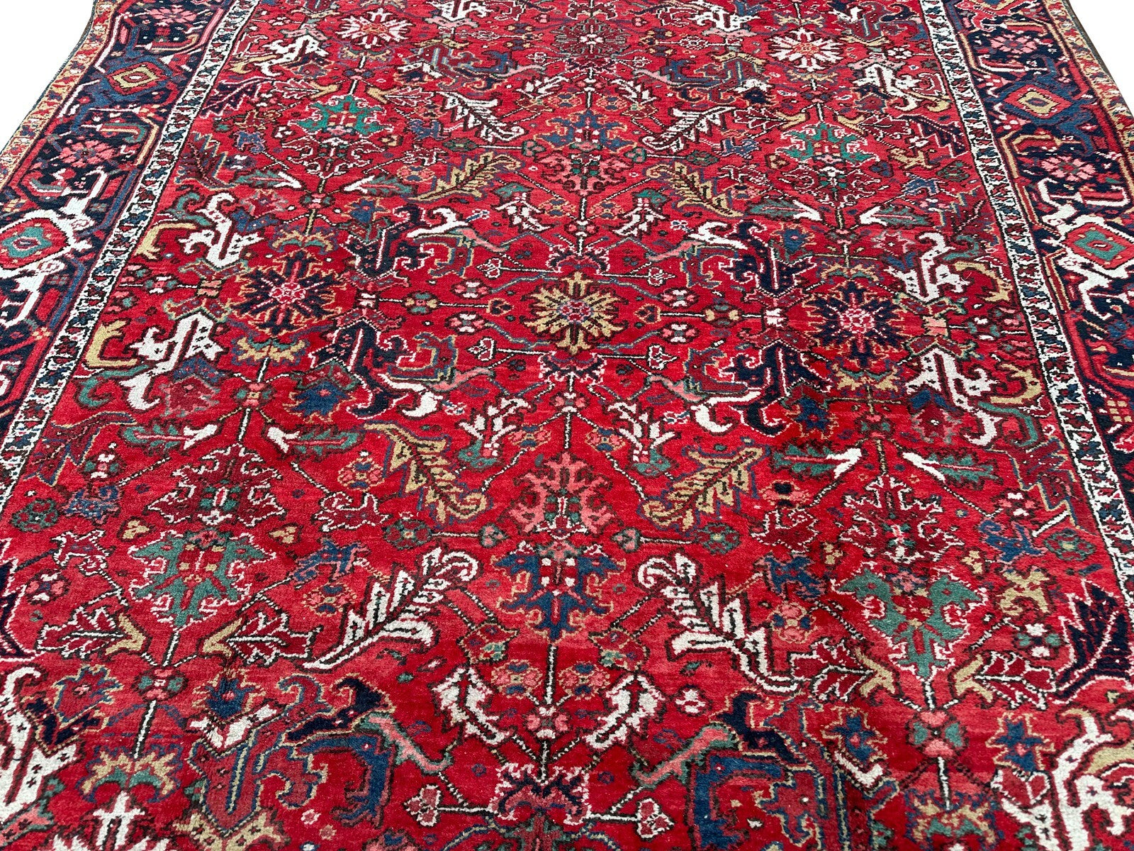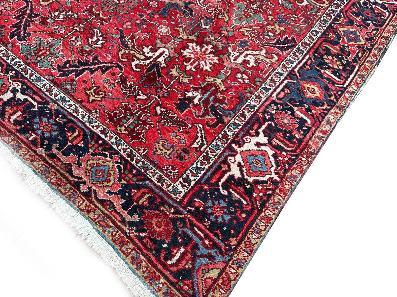" This is a magnificent, exceptionally high quality antique piece -geometric with soft red tones. This rug has been professionally cleaned. The cold climate helps nurture strong, quality sheep's wool. Because of this, Heriz Serapi rugs are often considered among the most durable antique rugs ever made."-DCR