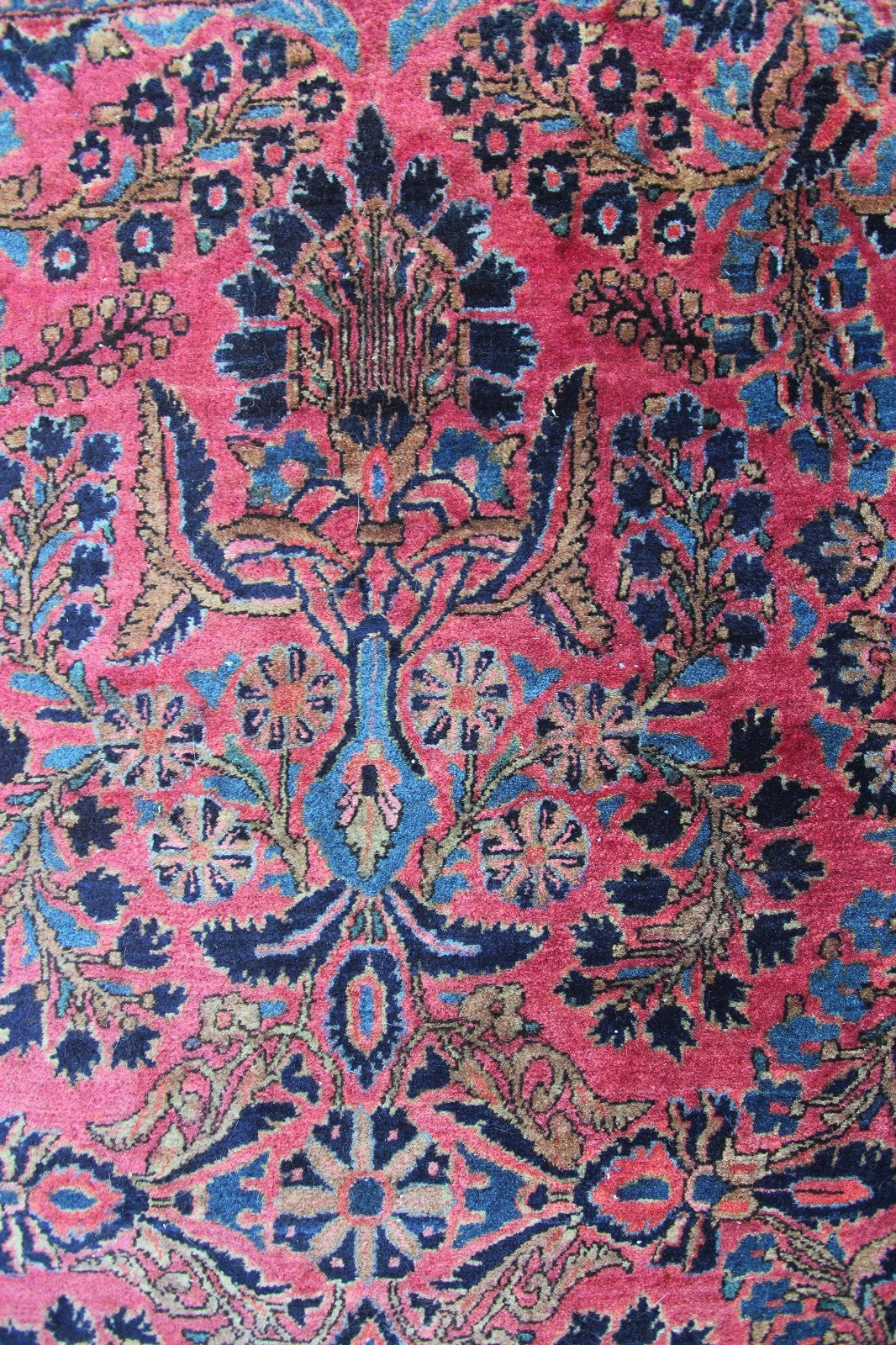 "This is an antique fine rug that was acquired from a NY state. It has a beautiful Floral design and magnificent character. This rug made of exceptionally fine wool and it is in great condition with great pile. Rugs of this caliber last for a long time, because of their quality. This piece has been professionally cleaned." - DCR