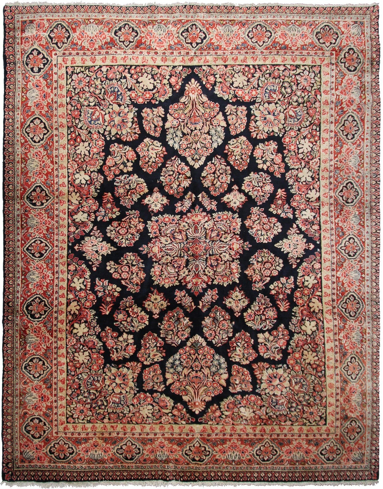 9x12 Antique Rug Exquisite Rug Mohajeran Sarrouk Handmade Rug Navy 1920 Authentic