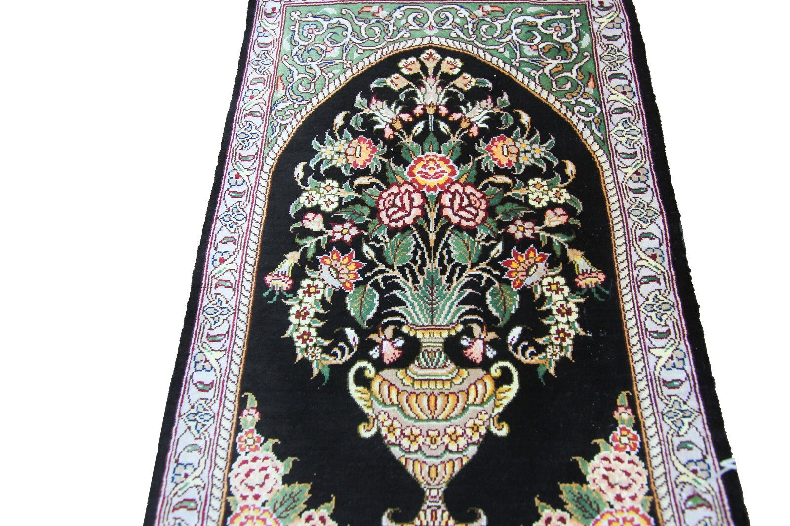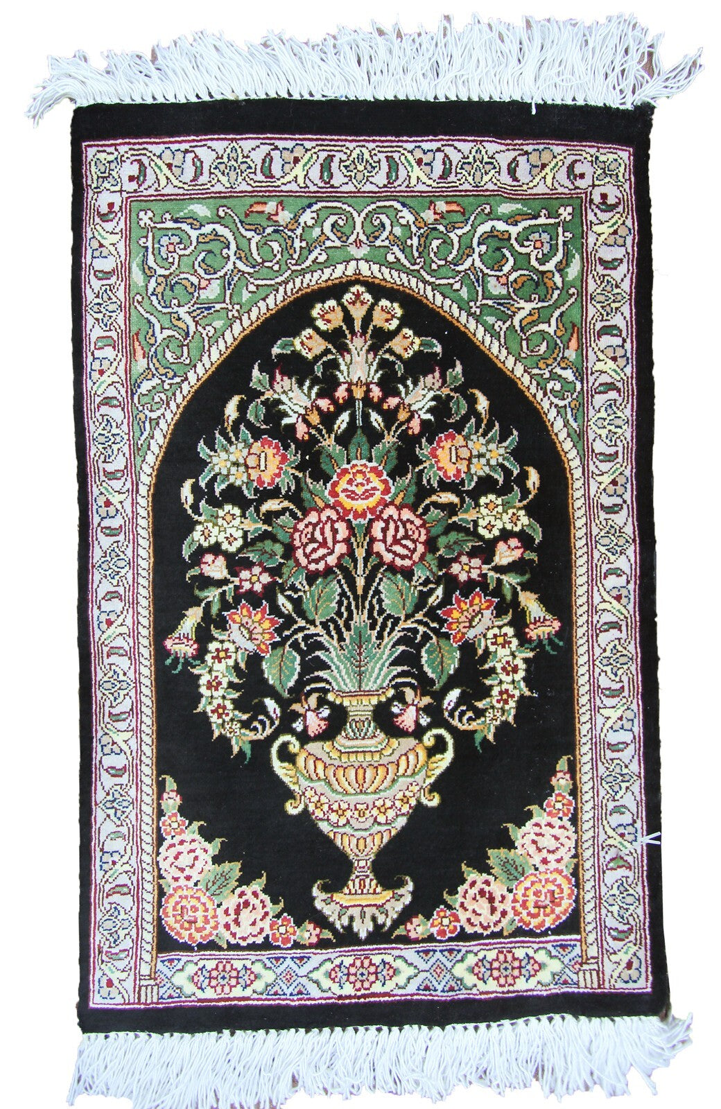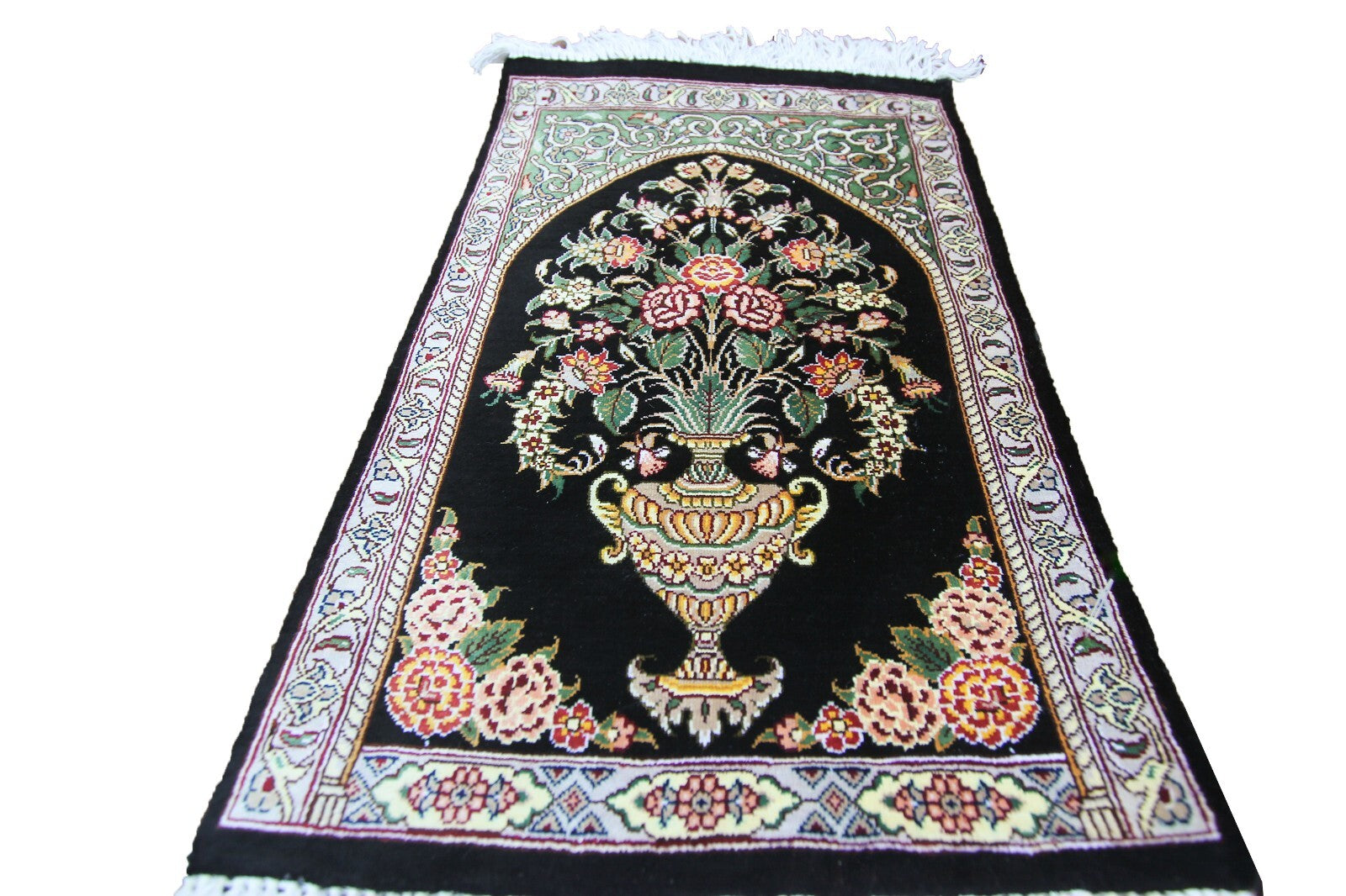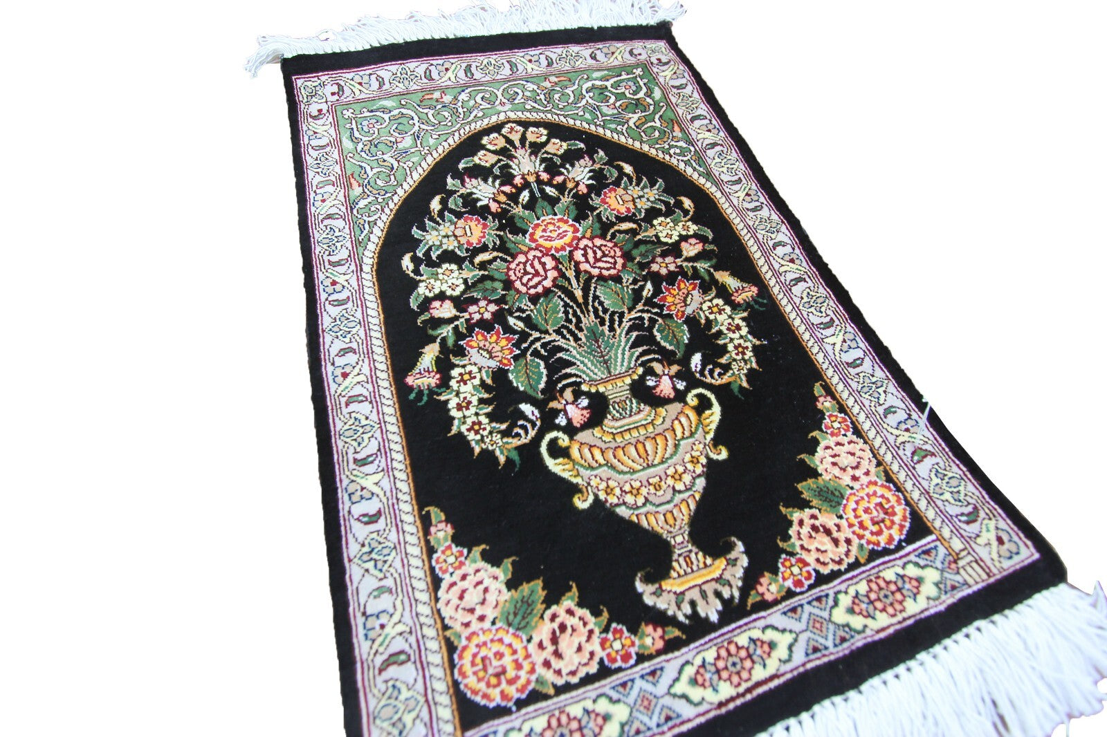 "This is a group of spectacular and rare Exceptionally fine pure natural silk rug with a silk foundation. It is a true work of art. These pieces are exceptionally fine with extraordinary artistic floral design- Collector quality!". Making rugs of this quality take a long time. This type of intricate work and can only be done by a true master weaver. These rugs can be used as a wall hanging or it can be used on the floor to be used in any traffic area.